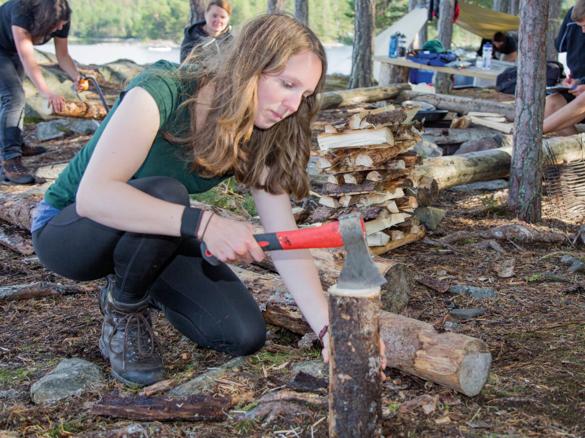 Damit die Kanurastplätze in ihrem Charakter erhalten bleiben, ist es notwendig, bereitgestelltes oder mitgebrachtes Feuerholz zu verwenden. Das von den DANO-Rangern bereitgestellte Feuerholz ist meistens in kleineren Stämmen vorhanden und muss zerkleinert werden. Gehe sparsam mit dem Feuerholz um, da es für viele Gäste reichen soll.
