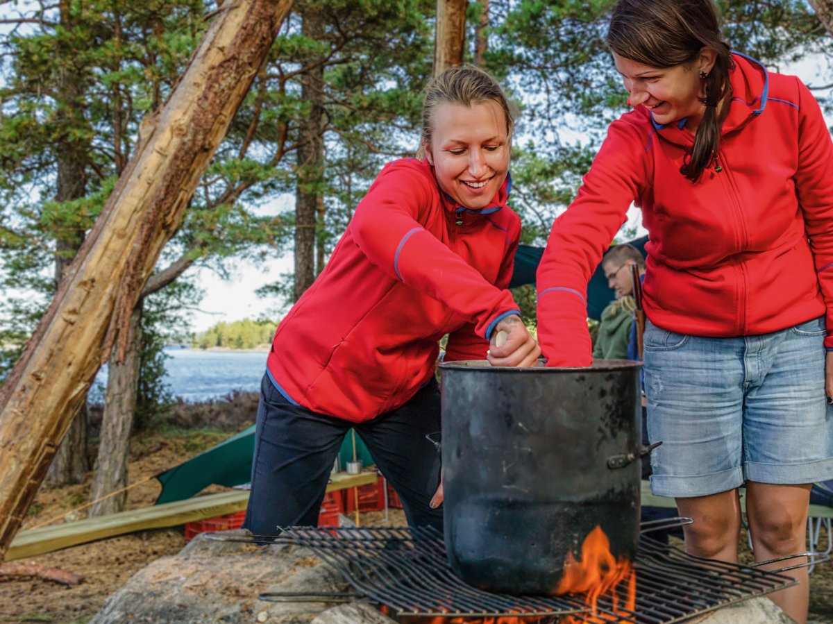 Ein prasselndes Lagerfeuer gehört zu einem gelungenen Outdoorurlaub einfach dazu. Über dem Lagerfeuer an den offiziellen Kanurastplätzen der Region kannst du dein Essen aus dem reichhaltigen Verpflegungspaket von scandtrack oder deinen Angelfang zu einem leckeren Abendessen zubereiten.
