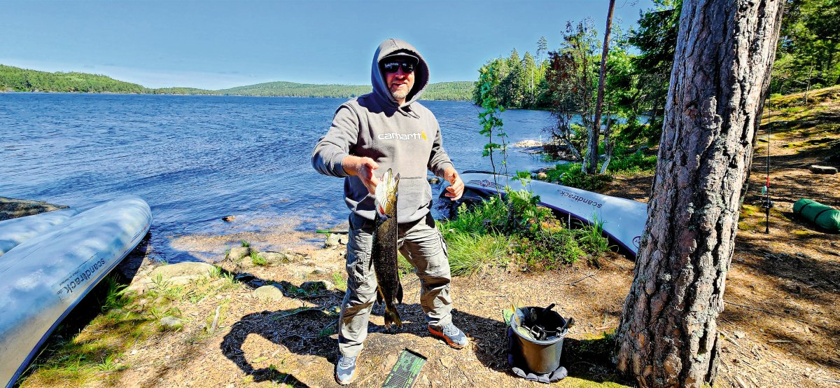 Du benötigst in Schweden keinen Angelschein wie in Deutschland. Um in der Region Nordmarken angeln zu dürfen, brauchst du lediglich eine gültige Angelkarte (Fiskekort). Die Angelkarte für die Seen rund um das Outdoorcamp Höglund in der Region Nordmarken wird pro Kanu ausgestellt und ist nicht übertragbar. Diese kostet z.Zt. 300 SEK pro Woche.