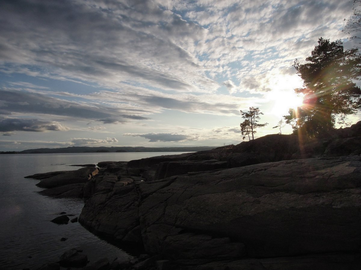 Im Zelt liegend hatten wir dann einen dermaßen wunderbaren Ausblick auf den Sonnenuntergang und den Abendhimmel, dass wir das Zelt die erste Nacht gar nicht verschlossen - und so schliefen wir erschöpft aber glücklich, mit Blick auf die Berge Norwegens am anderen Seeufer, ein.