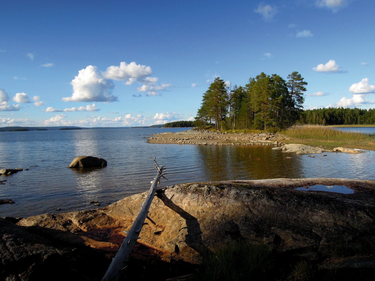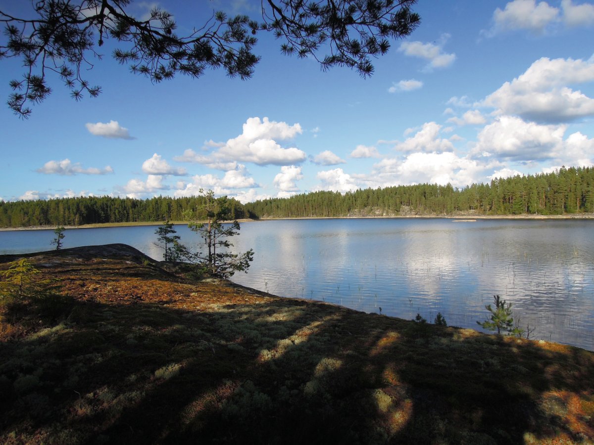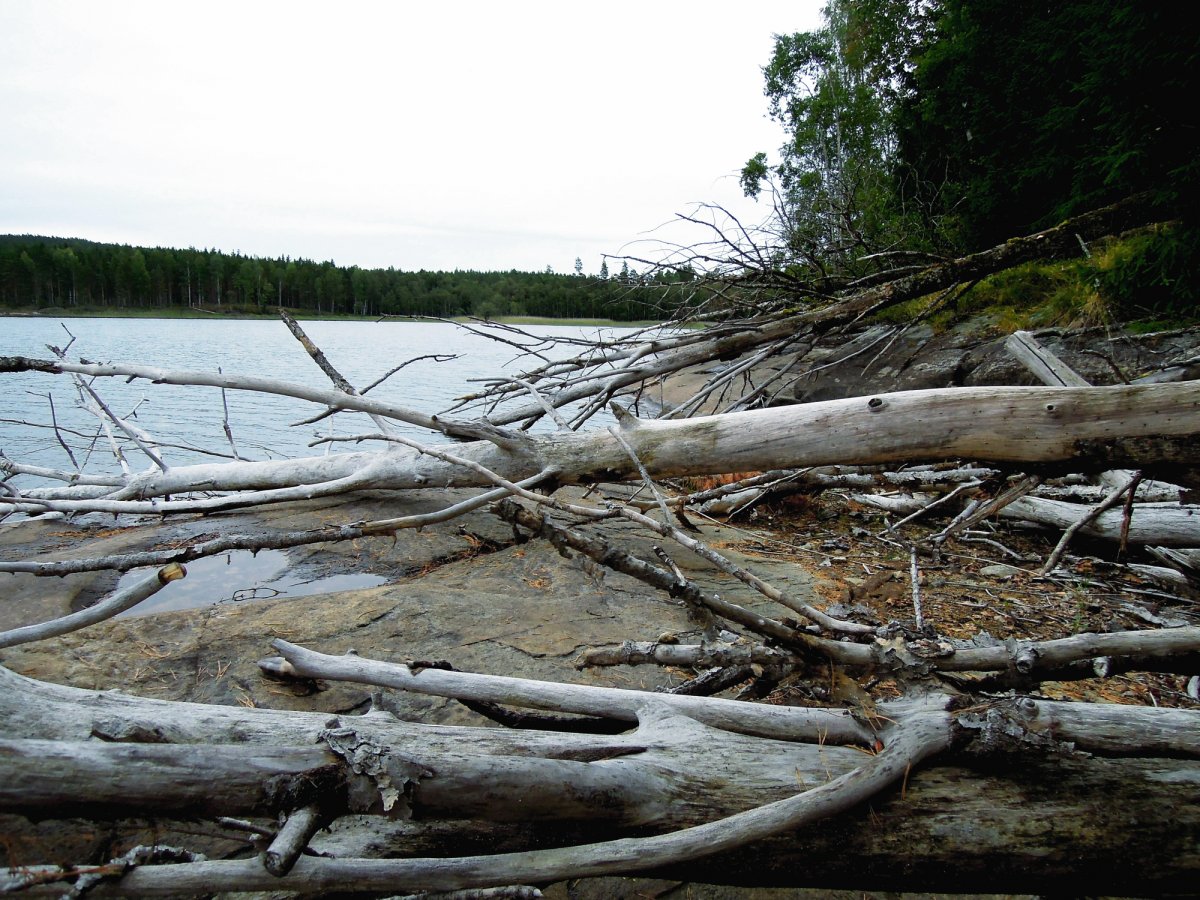 Es begab sich auf einem unserer kleineren Ausflüge, bei denen wir Pilze sammelnd die näher gelegenen Ufer und Buchten erkundeten, als wir nur ca. 50 Meter entfernt im Geäst sich etwas bewegen sahen. Der erste Gedanke „ahh ein anderer Pilzsucher“ hielt etliche Sekunden an, dann durchfuhr es uns: Ähem … MOMENT! Wir sind hier allein! Kein Haus, kein Boot weit und breit - woher sollte ein weiterer Pilzsucher kommen? Ein zweiter, genauerer Blick offenbarte dann die Sicht auf das gemütlich durchs Unterholz schreitende Hinterteil eines leibhaftigen ELCHES! Wir konnten unser Glück kaum fassen und erstarrten. Teils aus Überraschung, teils aus Respekt vor diesem doch nicht gerade kleinen Tier. Langsam pirschten wir noch etwas in die Richtung, wo soeben das Hinterteil im Wald verschwand, konnten aber keinen weiteren Blick erhaschen. In den nächsten Minuten vernahmen wir lediglich - quasi rund um uns herum, mal von hier, mal von dort, ein Schnaufen, ein leises „brummen“ und die festen, kraftvollen Tritte eines großen Tieres auf dem moosigen Untergrund. Unfassbar! Wir haben tatsächlich einen Elch gesehen :-)