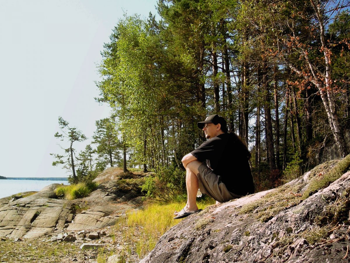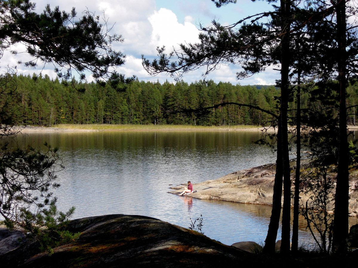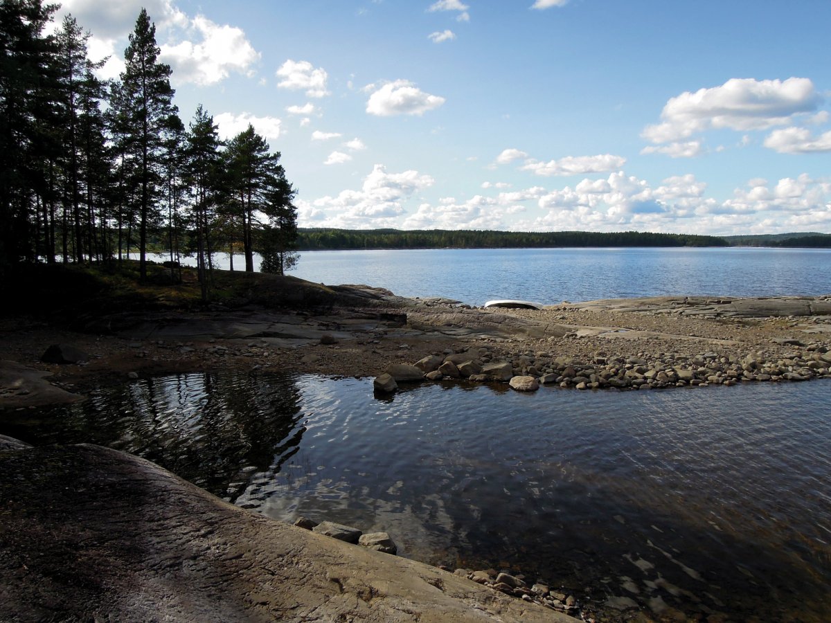 Es begab sich auf einem unserer kleineren Ausflüge, bei denen wir Pilze sammelnd die näher gelegenen Ufer und Buchten erkundeten, als wir nur ca. 50 Meter entfernt im Geäst sich etwas bewegen sahen. Der erste Gedanke „ahh ein anderer Pilzsucher“ hielt etliche Sekunden an, dann durchfuhr es uns: Ähem … MOMENT! Wir sind hier allein! Kein Haus, kein Boot weit und breit - woher sollte ein weiterer Pilzsucher kommen? Ein zweiter, genauerer Blick offenbarte dann die Sicht auf das gemütlich durchs Unterholz schreitende Hinterteil eines leibhaftigen ELCHES! Wir konnten unser Glück kaum fassen und erstarrten. Teils aus Überraschung, teils aus Respekt vor diesem doch nicht gerade kleinen Tier. Langsam pirschten wir noch etwas in die Richtung, wo soeben das Hinterteil im Wald verschwand, konnten aber keinen weiteren Blick erhaschen. In den nächsten Minuten vernahmen wir lediglich - quasi rund um uns herum, mal von hier, mal von dort, ein Schnaufen, ein leises „brummen“ und die festen, kraftvollen Tritte eines großen Tieres auf dem moosigen Untergrund. Unfassbar! Wir haben tatsächlich einen Elch gesehen :-)
