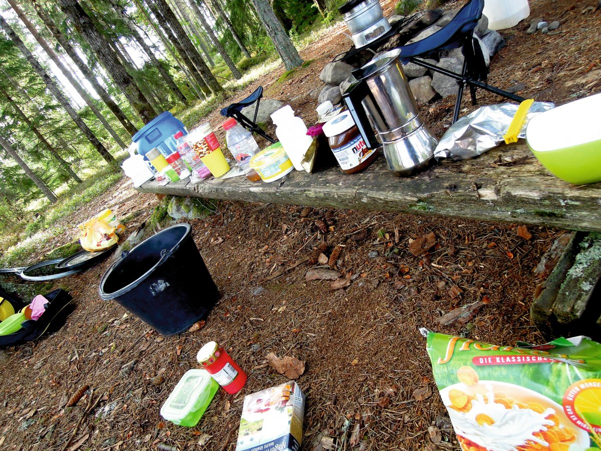 Ehrlicherweise muss man aber hinzufügen: Bei einem täglichen abkochen des Trinkwassers hätte der vorhandene Spiritus nur schwerlich die kompletten 7 Tage gereicht. Der morgendliche (in ausreichenden Mengen zubereitete) Kaffee, sowie Wasser zum Kochen von Nudeln und Kartoffeln ließen den Spiritusvorrat schnell schwinden, weshalb wir uns in den nächsten Tagen nach Rastplätzen mit Feuerstelle umschauten um unsere Mahlzeiten auf dem Grillrost zuzubereiten und Spiritus zu sparen.
