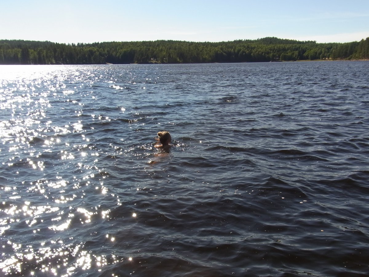 Am nächsten Tag wurden wir von der wärmenden Sonne geweckt. Erholt und durch das ausgiebige Frühstück gestärkt machten wir uns auf den Weg in den Flotefjorden. Und das war einfach herrlich! Für die 6km lange Strecke zum Dano 37 ließen wir uns richtig viel Zeit. Wir genossen die Landschaft und stellten fest, die Schweden stehen auf Pippi-Langstrumpf-Häuser mit perfide gepflegte Grünflächen. Klischee bestätigt!