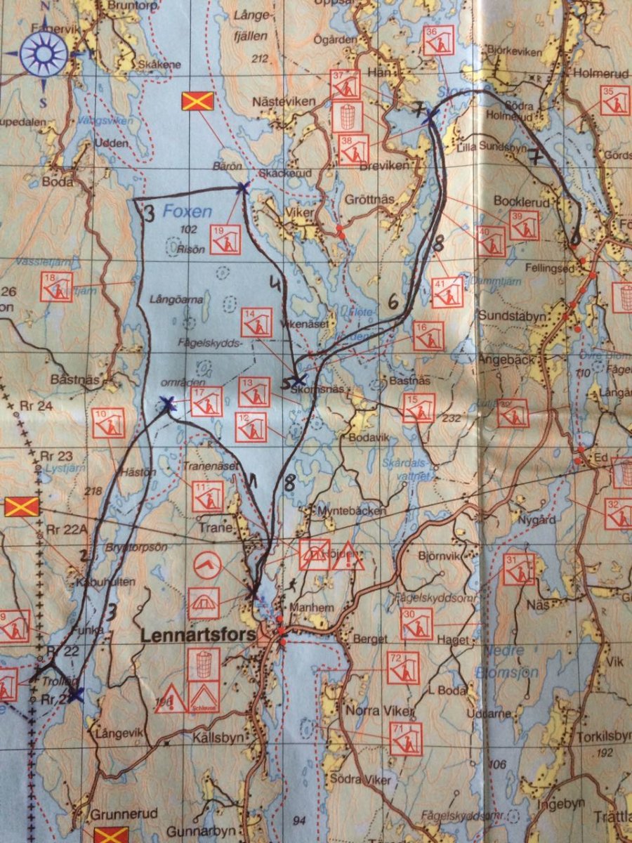 Tag 4 unserer Abenteuerreise führte uns wieder in Richtung Norden auf den See Foxen. An diesem Tag sollte es auch tatsächlich etwas abenteuerlich werden. Aber dazu später mehr. Zunächst paddelten wir wieder die felsige Küste entlang. Die Sonne schien und wir genossen diesen wundervollen Tag auf dem See. Erste Angelversuche scheiterten glücklos. Kein Fisch, nur ein Ast fand den Weg an unsere Route. Und nicht nur das! Am Nachmittag wurde es dann etwas stürmisch und ausgerechnet als wir den See queren wollten, fegte eine steife Brise über uns hinweg und lies das Kanu ordentlich schaukeln. Trockenen Fußes erreichten wir nach 13km auf dem Wasser Dano 19. Dort wurden wir mit netter Gesellschaft am Lagerfeuer und einer großen Portion Nudeln belohnt.