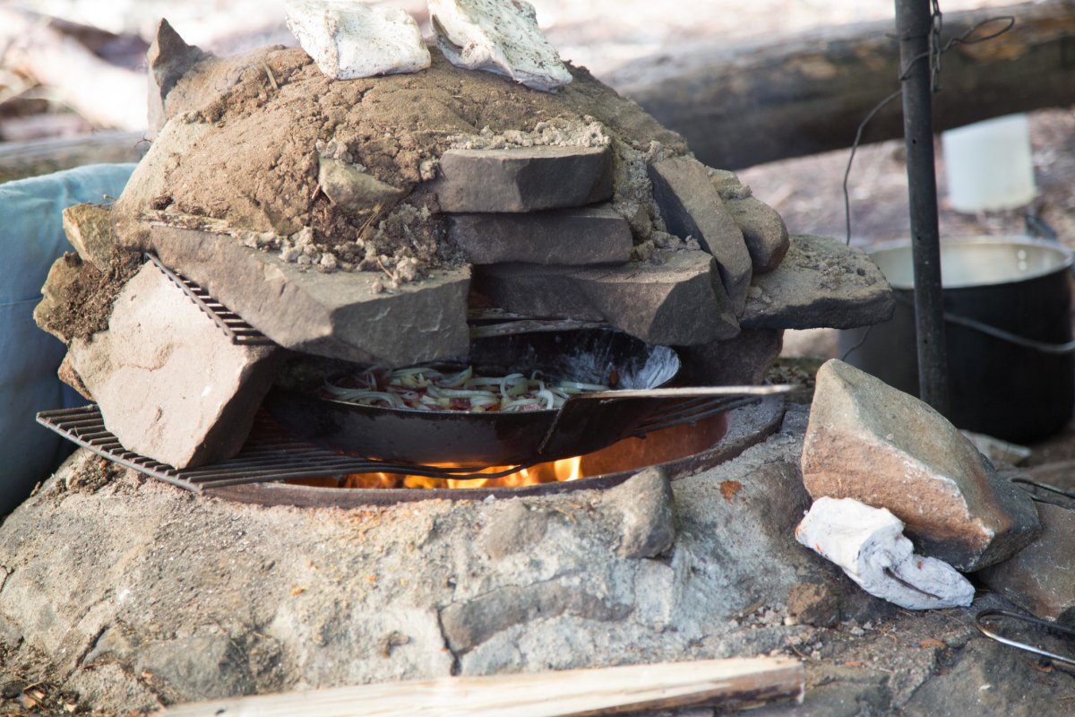 Morgens regnete es. Als alle aufgestanden waren, sicherten wir unser Lager mit den 4 Tarps und machten es uns ums Feuer gemütlich. Es wurde ein ruhiger Tag mit Massagen, viel Lesen und alten Geschichten.