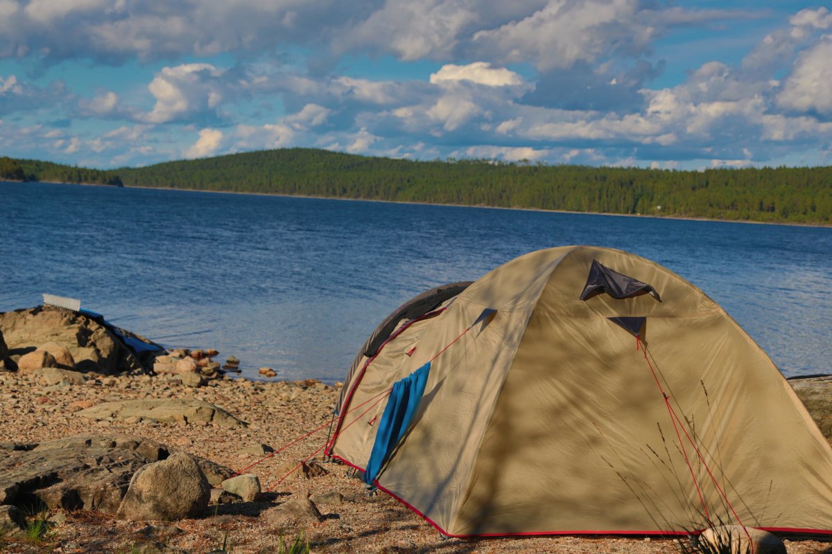 Auf Bärön waren schon zu viele Gruppen, die es seit Samstag nicht gewagt hatten, überhaupt in See zu stechen. Zwei Späher wurden entsandt, um mit einem Kanu nach einem guten Schlafplatz am gegenüberliegenden Ufer Ausschau halten. Sie wurden fündig und riefen uns per Handy hinterher. Hier war das Wasser, geschützt durch Bärön, ruhiger. Auf einer Anhöhe errichteten wir sehr zügig ein Lager mit Feuerstelle.