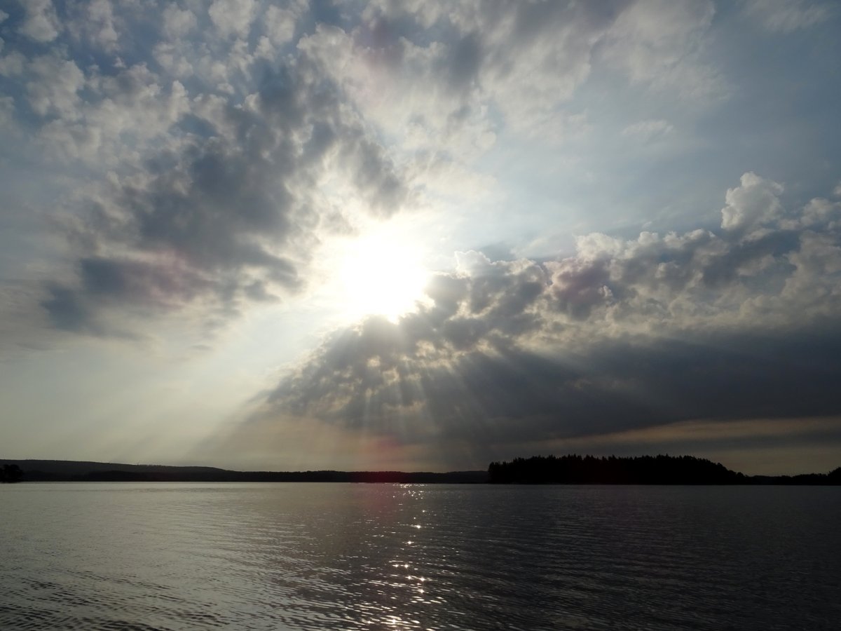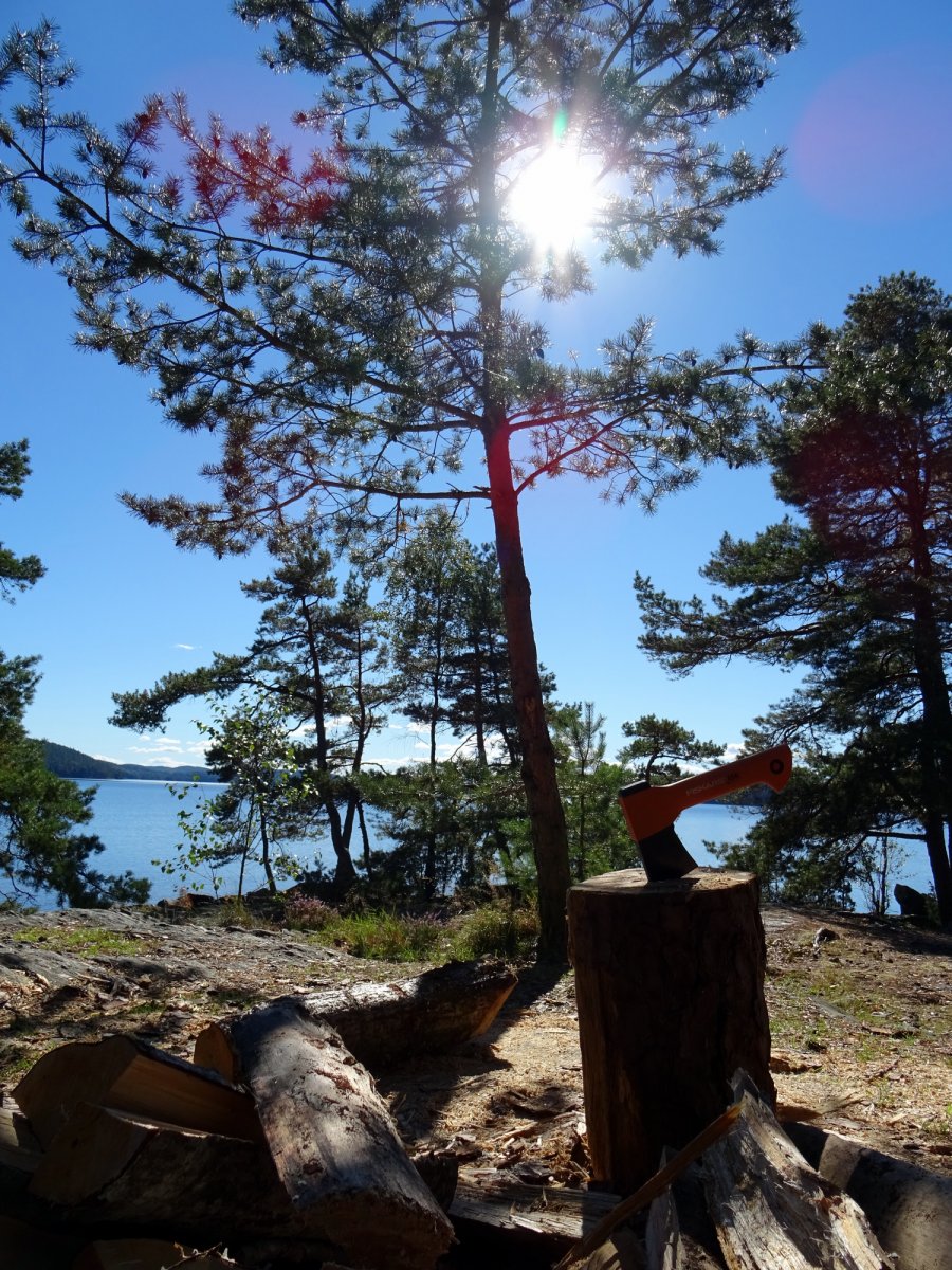 Trotz der Priese welche uns am nächsten Morgen noch entgegenschlug und der Wellenbildung welche sich auf dem Wasser abzeichnete, beschlossen wir, nach dem Frühstück zusammenzupacken und unsere Tour weiter gen Süden fortzusetzen. Gesagt – getan, kaum waren wir auf dem Wasser, mit dem Ziel die Wind abgewandte Seite des See zu erreichen, bereuten wir unsere Entscheidung gegen die Wellen anzufahren. Diese entwickelten sich zur Seemitte hin, auf eine enorme Größe, sodass der Beginn unserer Fahrt sehr holprig und kräftezehrend wurde. Glücklich auf der richtigen Seeseite angekommen arbeiteten wir uns von windgeschützter Bucht zu windgeschützter Bucht. Nach 1h Fahrt schlug das Wetter innerhalb weniger Minuten um, die Sonne bahnte sich ihren Weg, der Wind verschwand und der Stora Le glätte sich fast zur Gänze. Erleichtert die Schaukeltour ohne Kentern überstanden zu haben, setzten wir unseren Weg fort und erreichten unser Tagesziel die Insel Tronsholmen. Dort angekommen erkundeten wir die Lage und stellten fest das, zumindest zu dieser Jahreszeit, ein Inselpärchen mit einer schmalen Landbrücke aus Sand und Stein verbunden, als Lagerstätte zur Verfügung stand. Aufgrund der Wurzellage am Boden wählten wir die eine Insel zum Lagern und die zweite zum Kochen an der offiziellen Feuerstelle. Da wir die einzigen Besucher dieses DANOs waren, hatten wir einen ruhigen Abend mit Sonne, warmer Dusche und Linseneintopf. Für uns war dieser Lagerplatz einer der Top 3 auf der gesamten Reise und besticht durch seine ausgefallen Inselformation sowie guter Landungsmöglichkeit per Boot.
