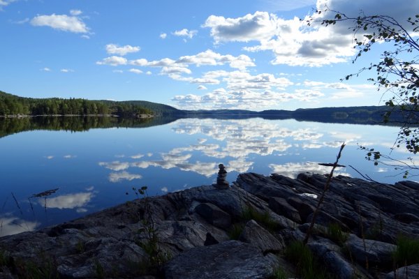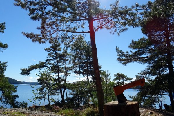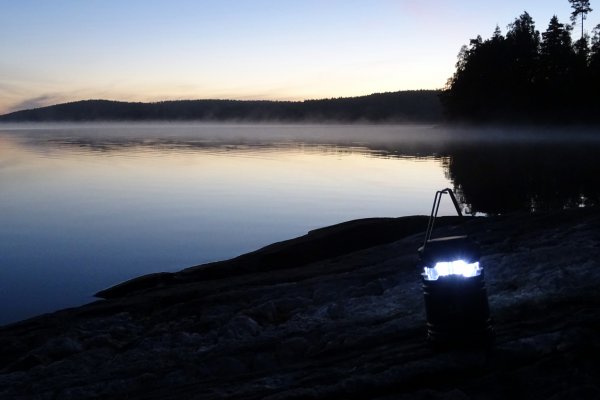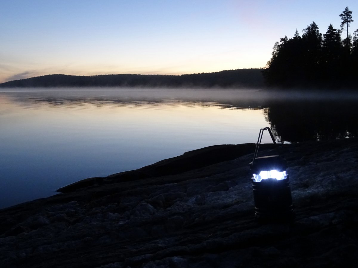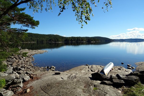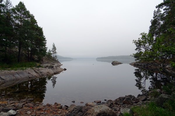 Der neue Morgen begann mit einer Kaffeepause nahe Göteborg - nun bereits in Schweden. Nach für uns über 24 h dauernder Anreise erreichten wir glücklich das Basiscamp von Scandtrack in Lennartsfors kurz nach 9:00 Uhr. Nachdem alle Reiseteilnehmer der beiden angekommenen Reisebusse aus den Sitzkojen gekullert waren, war eine Kurze Teepause mit Hotdog-Snack angesagt. Mit dieser etwas unzureichenden Stärkung eroberten wir kurzerhand die „Adventure-Road“ Richtung Ausrüstungsvergabe quer durch den Wald über Stock und Stein. Am Ort des Geschehens angekommen hieß es Ausrüstung entgegennehmen, kontrollieren, Klamotten umpacken und das ganze 100 m einen Kiesweg zum See heruntertragen (da 2 Wochen gebucht u.a. 2 recht schwere blaue Essenstonnen). Kurzum lässt sich dieser Vorgang aufgrund der Menschenmenge als organisiertes Chaos beschreiben, welches wir zum Glück sehr gut überstanden. Als wir endlich unser Boot beladen hatten und auf das Wasser starten konnten, waren wir so strahlend glücklich wie die Sonne über uns. Auf unserem Weg Richtung Stora Le über den Foxen „trafen“ wir auf dem Wasser wiederankommende Kanuten und meine abenteuerlustige Begleiterin befragte Sie nach einer kurzen Einschätzung ihrer Reise. Diese wurde unter Einschränkung der Wettervorrausetzung positiv zusammengefasst, sodass wir frohen Mutes unsere Reise fortsetzten. Da wir schon etwas Erfahrung im Paddeln hatten kamen wir recht schnell die ersten 8 km unserer Tour voran und landeten auf unserer ersten und einzigen Wildcampingstelle des Urlaubs auf der Insel Bryntorpsön. Dort angekommen bauten wir in der wild-romantisch gelegenen Bucht noch recht umständlich unser Zelt auf und kochten uns Nudeln mit Tomatensoße mithilfe des Spirituskochers. Das vorzügliche Mahl war schnell verspeist und mit etwas Tee ließen wir den Tag durchaus geschafft am Seeufer ausklingen.