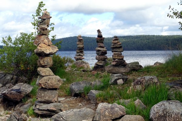 Wieder begann unser Tag mit Sonnenschein und Wind. Jedoch diesmal mit Rückenwind, sodass lediglich beim Beladen Schwierigkeiten mit den Wellen auftauchten. Mit Rückenwind und Wellen schaukelten wir also, nach unserem stärkenden Frühstück mit Eiweißbrot und Müsli, beschleunigt zurück Richtung Trollön. Dort kamen wir vergleichsweise früh an und erobern für uns diesmal den schwedischen Lagerplatz, welcher sich als der eindeutig bessere herausstellte. Die sanfte Sandbucht bietet guten Schutz bei Wellengang zum Landen und Ablegen, sodass wir problemlos alle unsere Habseligkeiten ausladen und den Lageraufbau vollziehen konnten. Eigenart dieses DANOs ist, dass man zur Schutzhütte und zum Feuerplatz einen kleinen jedoch bei Nässe durchaus tückischen Hügel erklimmen muss. Vorteil dieser exponierten Lage allerdings ist der gute Rundumblick den Stora Le hinauf. So verbrachten wir den restlichen Tag mit Kochen, Tee trinken und der obligatorischen Feuerholzgewinnung welche sich hier als recht mager herausstellte. Bemerkenswert waren an diesem Lagerplatz die kleinen Steinmännchen welche dem geneigten Paddler eine eindeutige Lagerplatzmarkierung waren und einen skurrilen Eindruck auf der vorgelagerten Landzunge hinterließen. Der Abend war wie immer ruhig und da inzwischen auch die zweite Reisewoche angebrochen war, begossen wir diese mit den ersten Schlucken aus unserer mitgeführten Weinflasche. Zudem spülte die Brandung zu später Stunde noch ein Kanutenpärchen an unseren Lagerplatz, welche auf der Suche nach Feuerholz von dem norwegischen Lagerplatz auf der Insel zu uns herüberkamen. Diese Kanuten zählten zu den Neuankömmlingen für die letzte Wochentour in diesem Jahr und waren dankbar über einige hilfreiche Tipps sowie über die Reste der von mir gespaltenen Holzscheite.