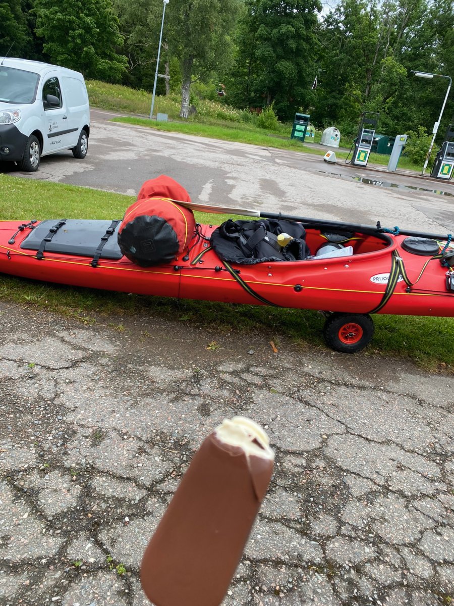 Die erste Umtragestrecke von knapp 3 km wird, mit einem kleinen Zwischenstopp für ein Eis und Einkauf in Fengersfors gemeistert.