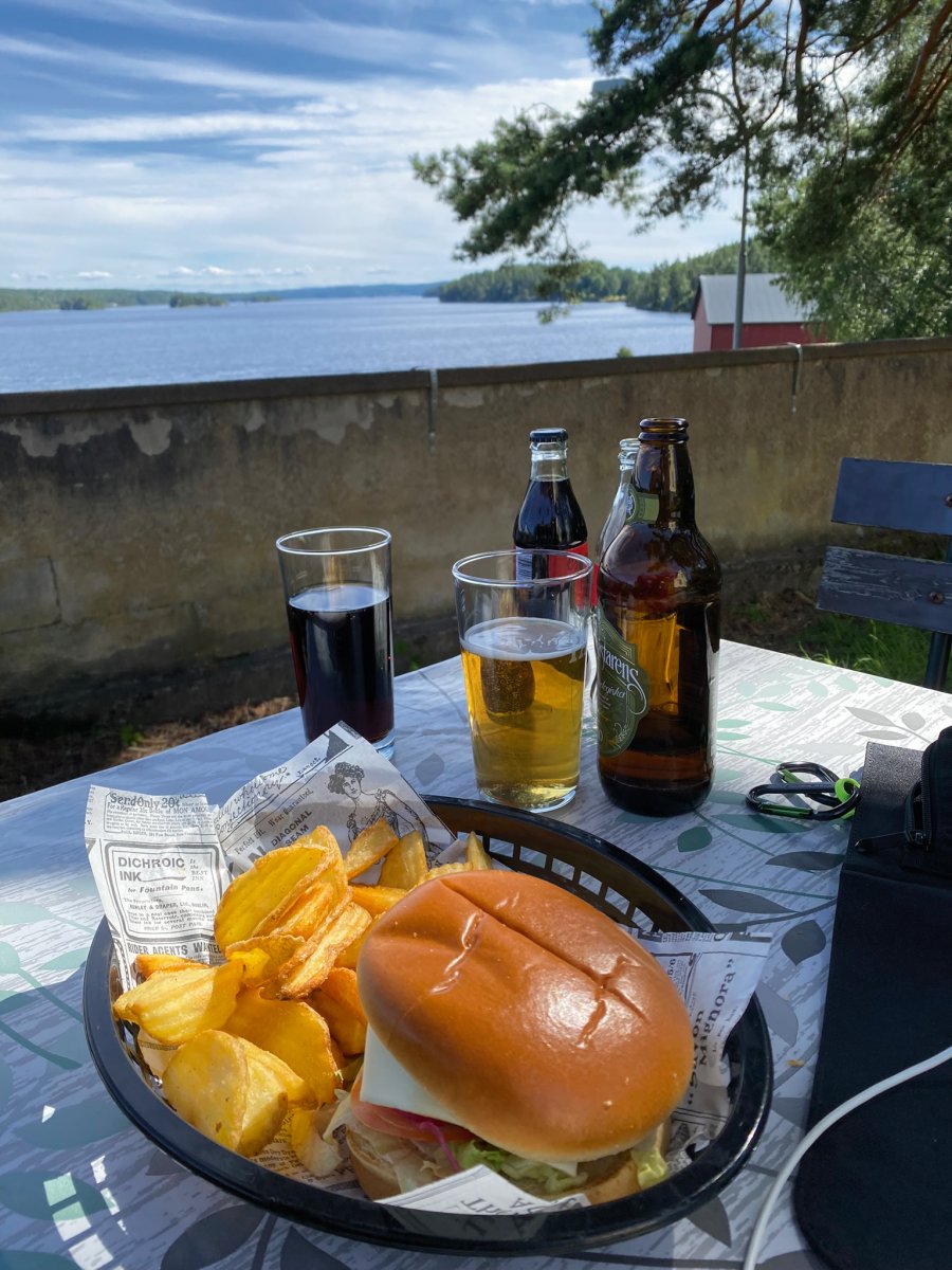Eigentlich hatte ich mir selbst eine Halbzeit Belohnung versprochen die ich nun endlich einlösen konnte! In einem Netten Restaurant mit schönem Ausblick habe ich mir einen Elchburger schmecken lassen. Was ein Genuss nach 10 Tagen Nudeln und Porridge!