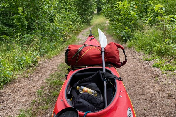 Am Ankunftstag wurde ich mit ein paar wenigen meines Busses beim Kajakverleih „Bootshaus“ in Bengtsfors raus gelassen. Die anderen und gegen meiner Größten Sorge auch die aller meisten sind danach noch zwei Stunden weiter nach Lennartsfors gefahren. Das brachte mir schon etwas Erleichterung, da ich mit deutlich mehr Gästen gerechnet habe, jedoch war diese Angst sehr unbegründet. Wir wurden von einem netten Jungen Mann des Scandtrackteams begrüßt und eingewiesen. Die Mitarbeiter des Bootshauses waren ebenfalls super freundlich und halfen wo es ging. Ich empfing meine Ausrüstung, sortierte die Sachen aus die ich nicht brauchte und konnte endlich mein Kajak in Empfang nehmen und beladen. Das war mal ne Herausforderung!! Ohne jegliche Erfahrung, außer Tretbootfahren als Kind, dass Kajak so zu beladen das man an die wichtigsten Sachen aus dem Sitz zugreifen kann und die anderen Luken so zu packen dass man nicht immer nach allem rumwühlen muss.