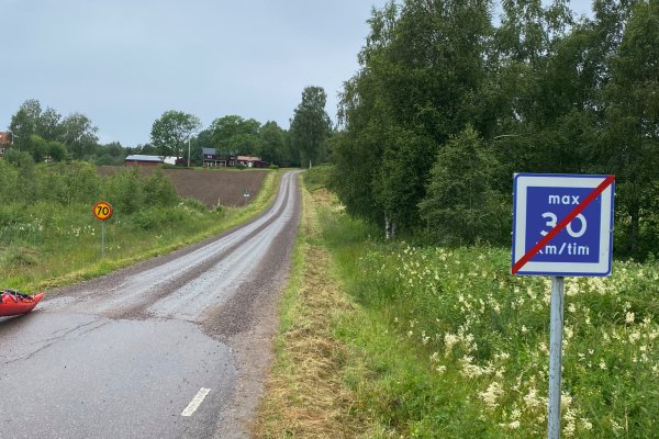 Die Schweden haben eine fantastischen Humor. Bei einer neu geteerten Straße haben sie die Geschwindigkeit auf 30km/h begrenzt aber als die Straße zu einer Schotterpiste wurde ist plötzlich 70?! :o