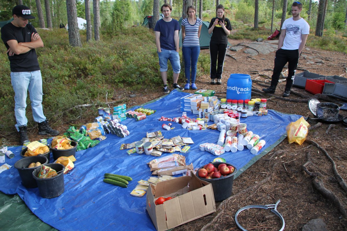 Nach der Ankunft im Basiscamp habe ich dann festgestellt, dass es tatsächlich doch 5 Leute im Bus gab, die zur Morning Light Tour gehörten, aber wir sollten ja ohnehin noch genug Zeit haben um uns kennenzulernen. Durch Würstchen gestärkt und von den anderen aus dem Südbus begrüßt, ging es über einen Trampelpfad mitten durch den Wald zum „Logistikzentrum“. Hier wurde sämtliches Material vom Packsack über die Verpflegung an uns ausgegeben und wir lernten unseren Guide Nicolai kennen. Der erste Eindruck von ihm lies sich treffend mit den Worten „Der Typ hat doch nen Ruhepuls von so 20“ beschreiben und im Laufe der Woche durchaus bestätigen.