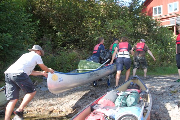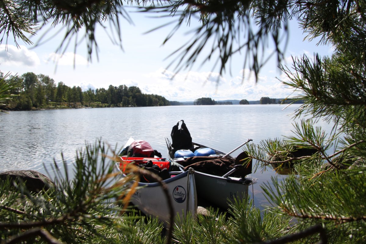 Der Montagmorgen empfing uns geradezu klischeehaft mit eher mäßigem Wetter, auch die Sonne hatte also keine Lust auf Montag… Das Lager war schnell abgebaut, Kanus beladen und los ging es in Richtung des Seeendes, denn wir wollten die Kanus auf einen anderen See umtragen.