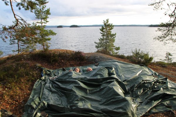 Der Wind hatte über Nacht kaum nachgelassen und Paul unser Wetterguru hatte uns Regen bevorgesagt, so entschieden wir einen Lagertag einzulegen und in Ruhe auszuschlafen. Das Pärchen verabschiedete sich von uns und wir grübelten noch einige Zeit über ihr letzen Worte nach („Ihr seid ja ne nette Truppe, wären euch aber nicht böse, wenn ihr am nächsten Rastplatz vorbeipaddeln würdet“) bis wir mit den Vorbereitungen für das heutige Wellness-Highlight, einer Schwitzhütte, begannen.