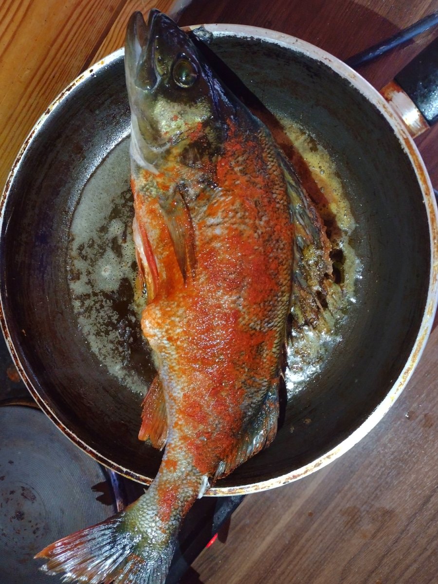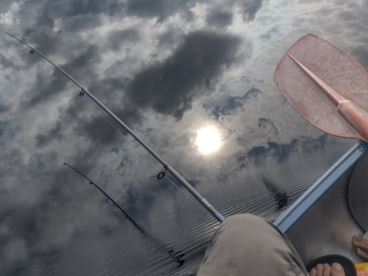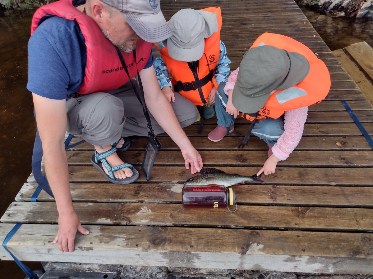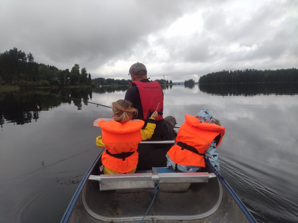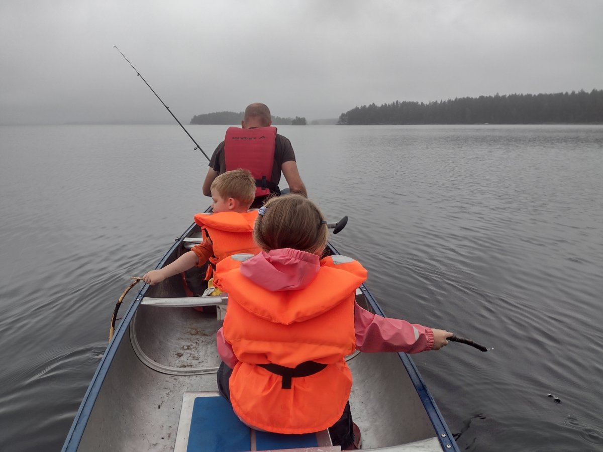 Am letzten Tag vor unserer Abfahrt paddelten wir nochmal bis mittags herum und es sollte ein letztes Mal ein Fisch an die Angel gehen. Es war ein großer Barsch von ca. 34cm. Für die Pfanne ein wenig zu groß, aber immerhin haben wir Eltern etwas abbekommen.