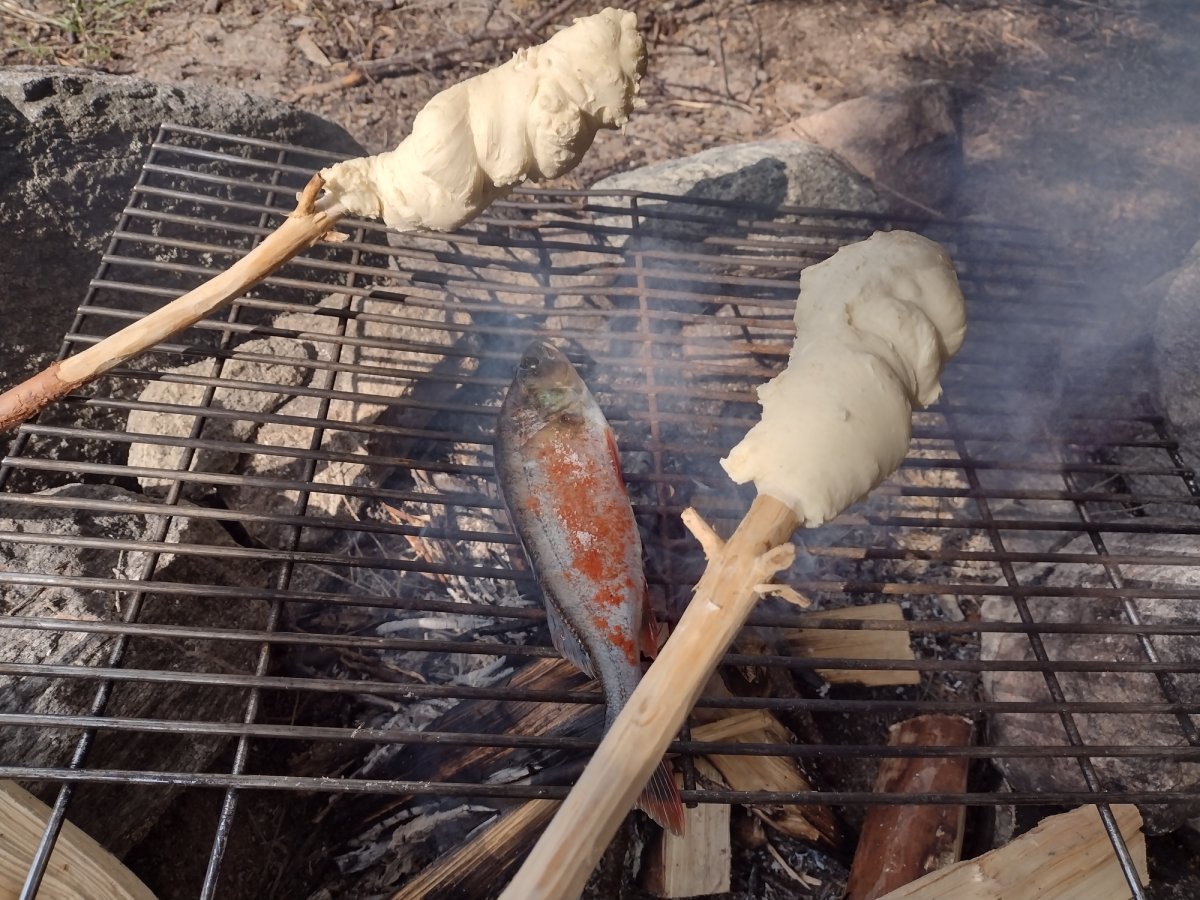 Am 28.08.2023 machten wir einen Tagesausflug an mehrere kleine Sandstrände. Perfekt für die Kinder, die sehr viel entdeckt und gebaut haben. Wir hatten einen Barsch gefangen, den wir mit Stockbrot und Würstl gegrillt haben.
