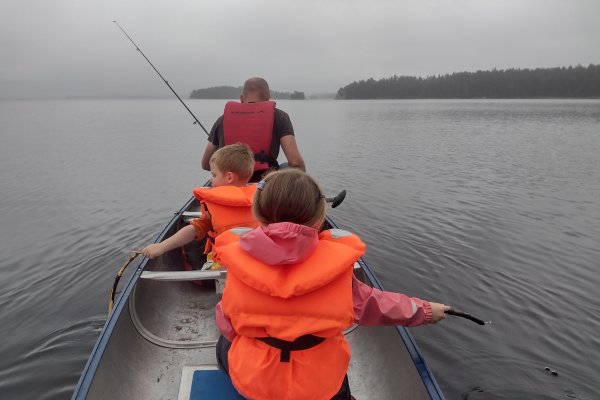 Nach einer kurzen Mittagspause hieß es den Wald hinter dem Scandtrack Gelände zu erkunden. Da fanden wir eine Menge Blaubeeren, Preiselbeeren und Pfifferlinge. Am späten Nachmittag erlaubte es das Wetter, dass wir noch im See planschen und angeln konnten.