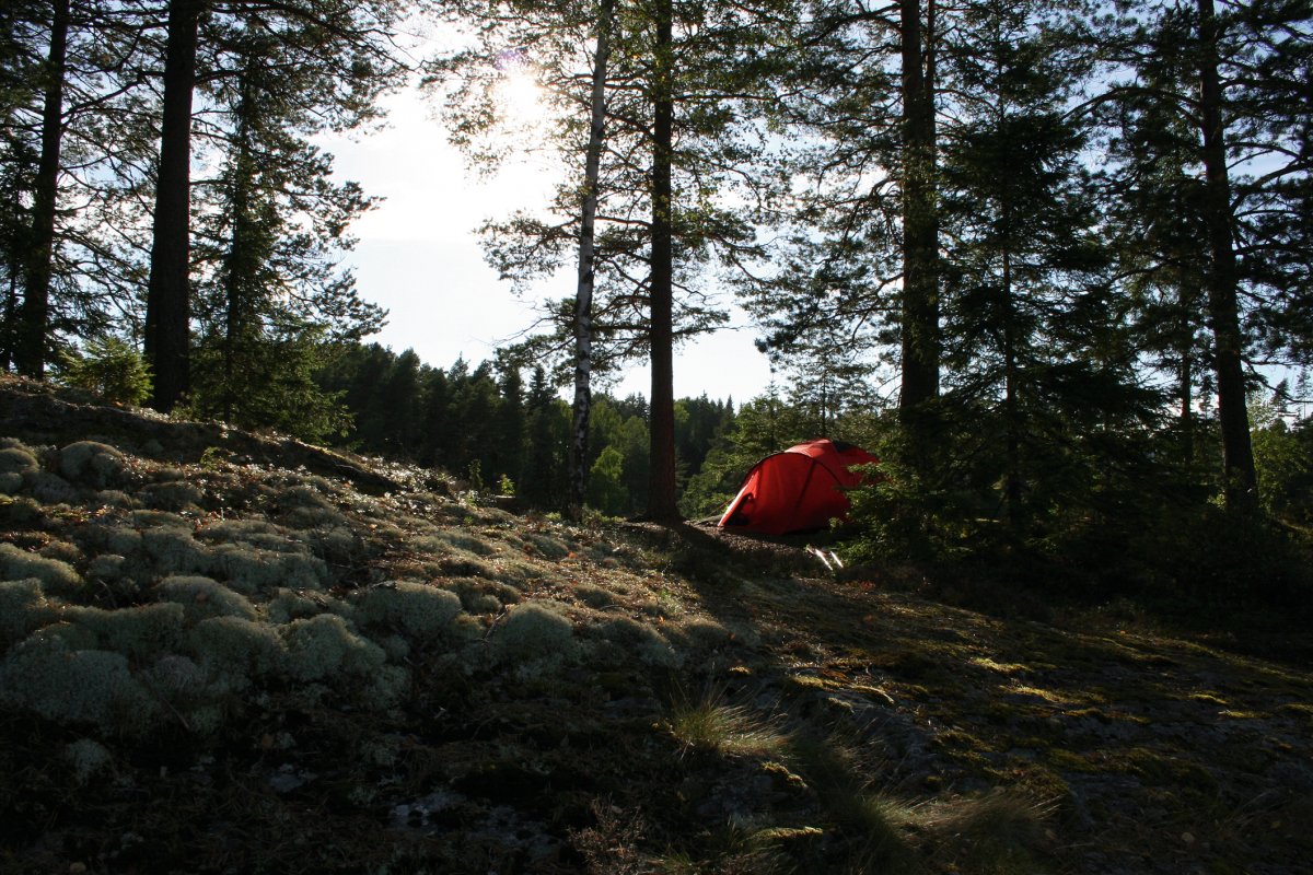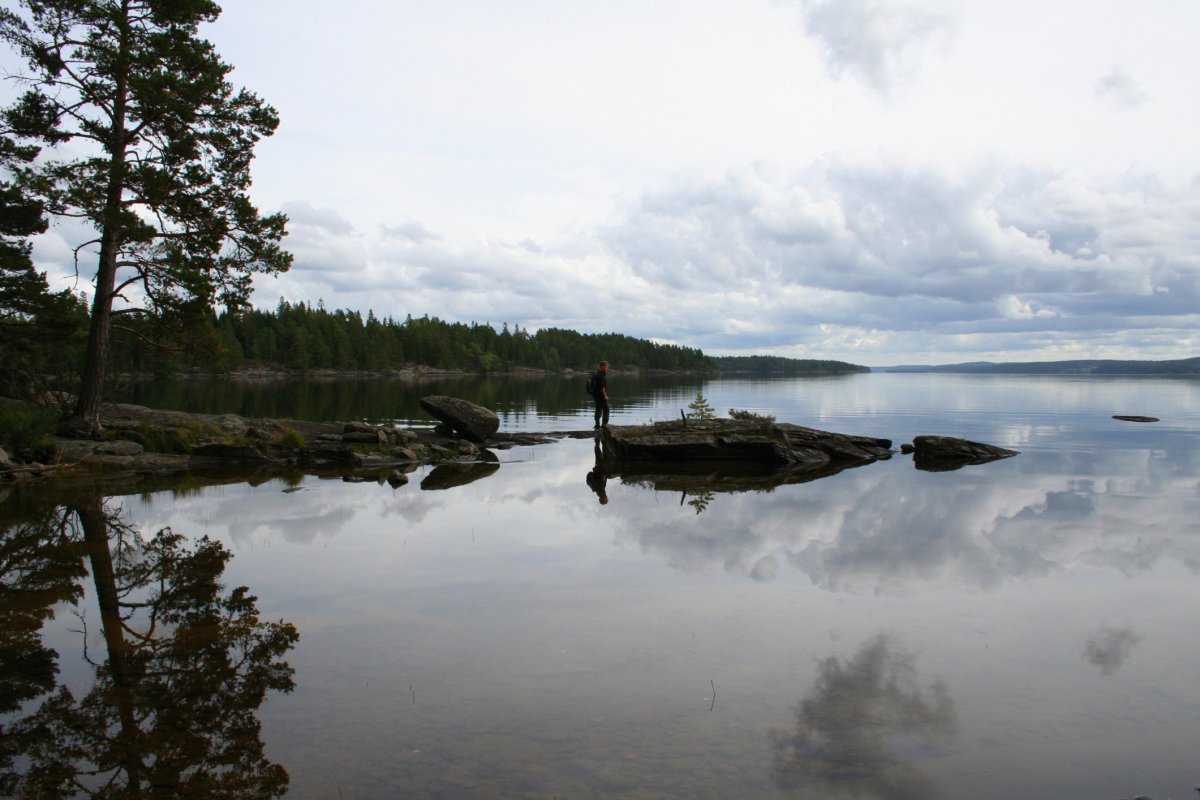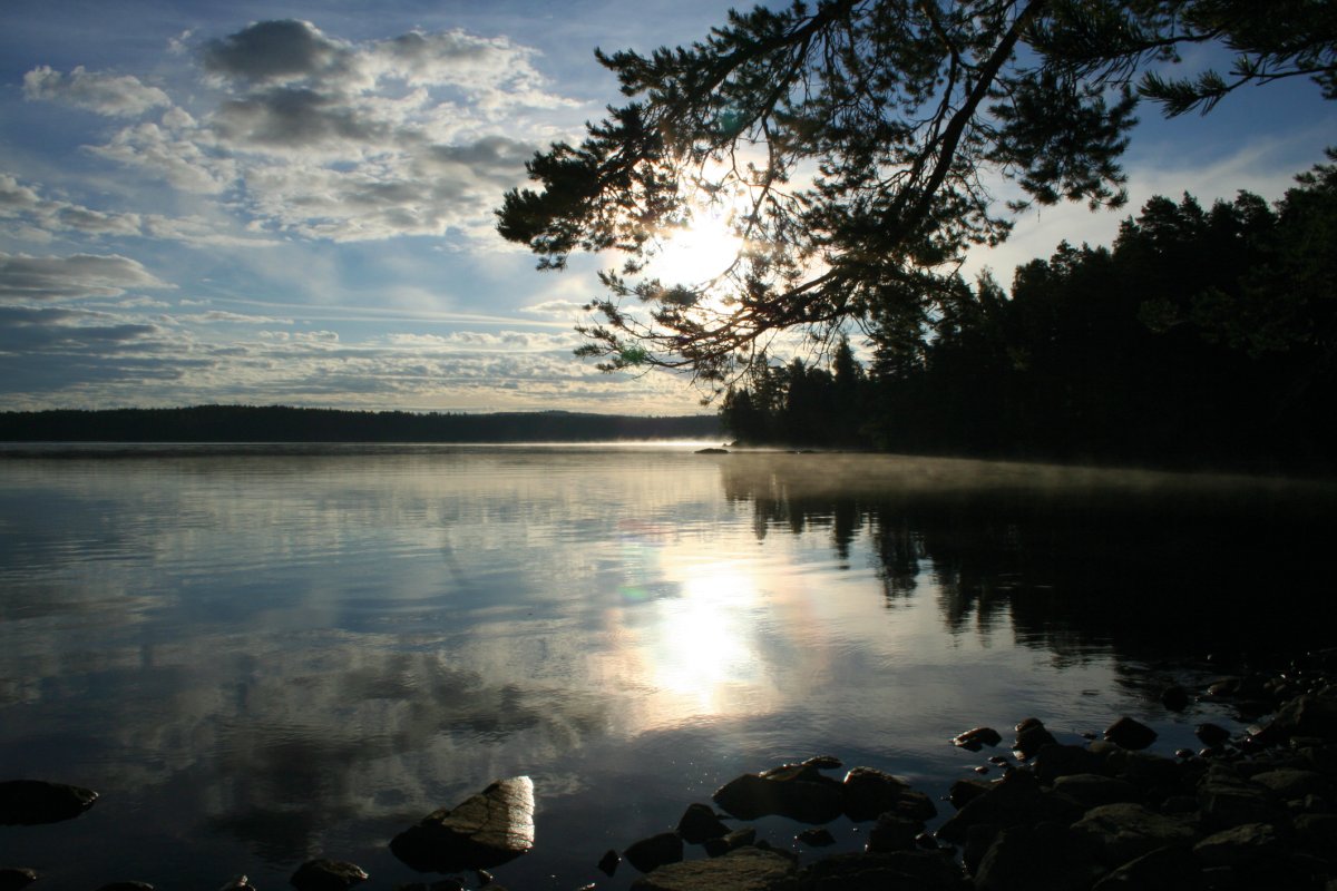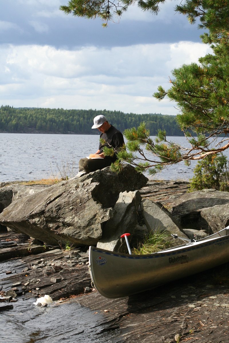 Diese wunderbare Entspannung sollte uns bis auf wenige Schreckmomente ( „Verdammt, musst du das Kanu beim Einsteigen halb zum Kentern bringen?“….“Warum können auf einem kleinen Binnengewässer bei starkem Wind SO hohe Wellen aufkommen?“….“Wie finden wir eigentlich aus diesem Wald wieder raus? Wir finden ja nicht mal den Weg zum Wasser zurück zur Orientierung“……NACH dem Genuß der hervorragenden Pilzpfanne: „Ich habe noch nie Pilze gesammelt, aber du hattest da doch sicher Erfahrung mit, oder…?“) die komplette Zeit über begleiten, ebenso wie die Sonne. Wir hätten mit allem gerechnet- aber nicht damit, annähernd 2 Wochen durchweg strahlenden Sonnenschein zu haben. Das Kanufahren lief prima- wir versuchten allerdings auch nicht, uns mit sportlichen Höchstleistungen zu überbieten. Unsere tägliche Strecke variierte zwischen 2 und 20 km.