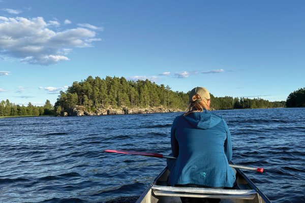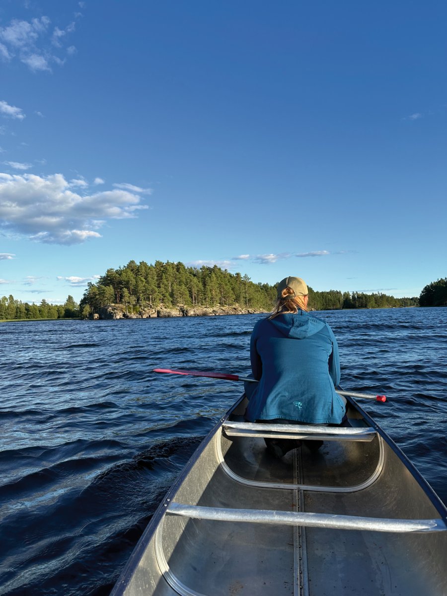 Als wir in die Paddel griffen und lospaddelten, fühlte ich die Vorfreude auf das, was vor uns lag. Die Landschaft um uns herum war einfach atemberaubend – die unberührten Ufer, die hohen Bäume, die sich in die Höhe streckten, und das sanfte Rauschen des Wassers, das den Rhythmus unserer Bewegungen begleitete. Der See war heute ruhig, und das gleichmäßige Paddeln sorgte für einen beruhigenden Flow, während wir in Richtung Stora Le glitten.