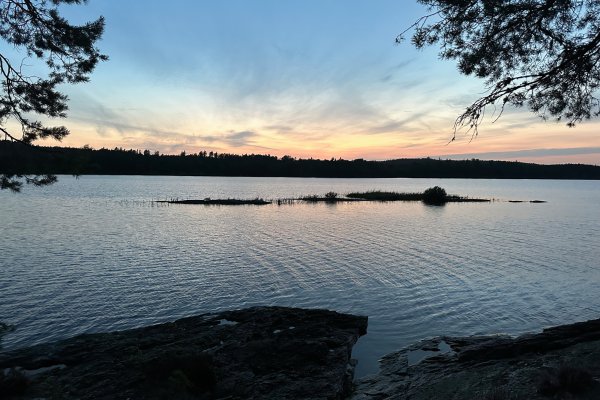 Als der Abend näher rückte, machten wir uns auf die Suche nach einem geeigneten Lagerplatz. Unser Ziel war Dano 17, ein Ort, von dem wir gehört hatten, dass er recht beliebt ist. Je näher wir jedoch wieder in Richtung Lennartsfors paddelten, desto mehr bemerkten wir, dass die Inseln um uns herum lebhafter wurden.
