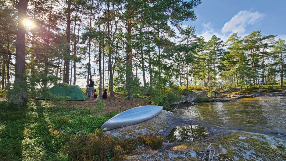 Da es unser Plan war, es bis zum Västra Silen See zu schaffen, war das nächste Ziel eine kleine Insel vor der Mündung zum Kanal in Richtung Gustafsfors. Erwartbarer Weise hatten diese Idee auch noch einige andere Kanuten, zumeist von Süden kommend, womit sich diese Insel von uns den liebevollen Namen „Partyinsel“ verdient hat. Wir hatten unser Lager noch relativ einsam, ein Stückchen weiter stand aber Zelt an Zelt.