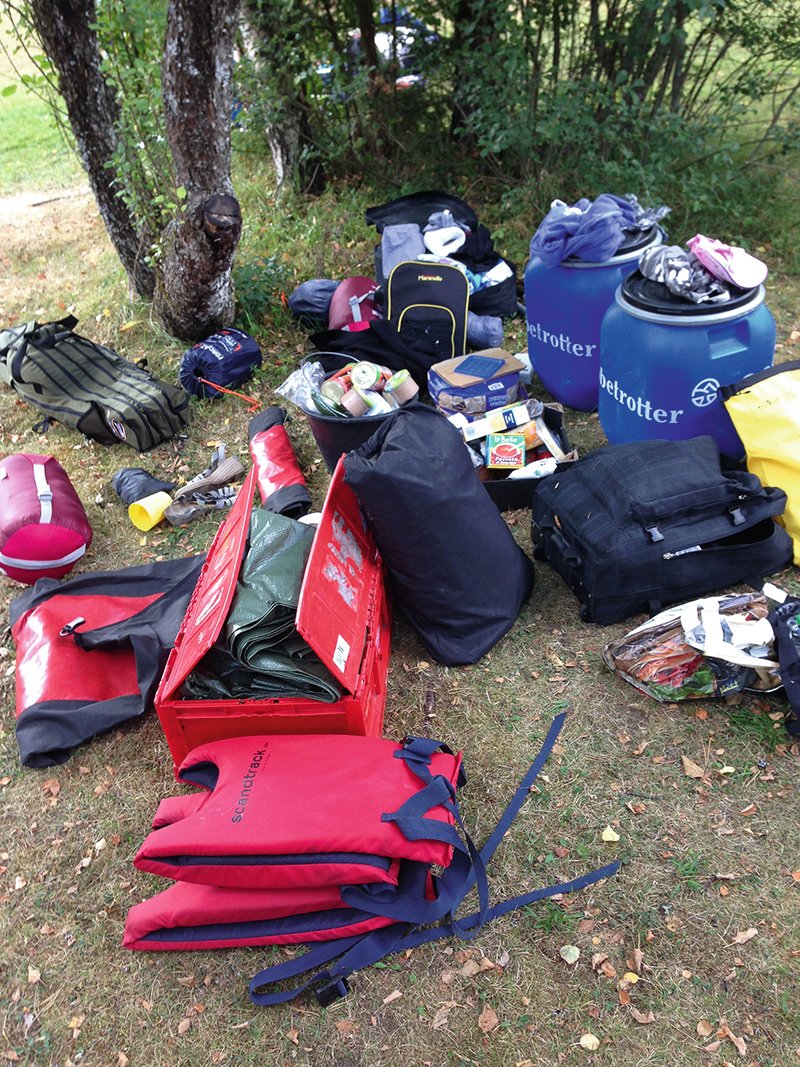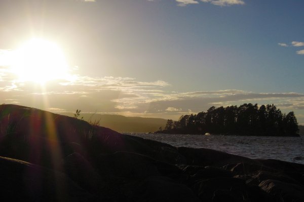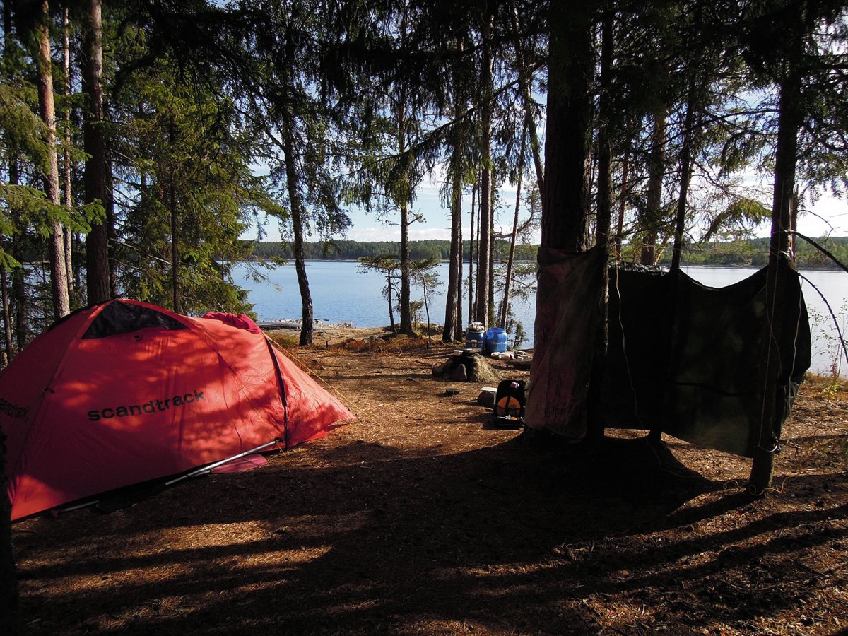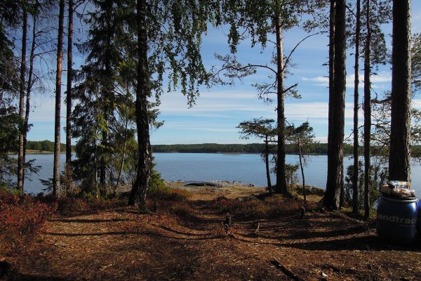 Aber von vorn: Der Scandtrack Express hatte am Tag unserer Abreise Richtung Schweden aufgrund etlicher Staus über eine Stunde Verspätung, konnte dies aber auf der Fahrt wieder wett machen, so dass wir am Samstag Vormittag pünktlich in Lennartsfors ankamen. Nun galt es, erstmal das Equipment in Empfang zu nehmen und im Boot zu verstauen. Für die gebuchten zwei Wochen gabs entsprechend auch eine rappelvolle zweite Essenstonne und insgesamt nebst Zubehör entsprechend etwas weniger Platz im Boot. Da wir die Prozedur der Equipment- und Bootsübergabe bereits vom Vorjahr kannten, waren wir entsprechend geübt und stachen alsbald in See. Schließlich wollten wir gleich am ersten Tag noch genau „den“ Platz ansteuern, den wir vom letzten Jahr mit den tollsten Erinnerungen verbanden. Ein kleines Fleckchen im Flötefjorden ca 6,5km vom Basiscamp entfernt. Würde unser Lehmofen vom letzten Jahr noch stehen? Ist der Platz eventuell schon besetzt? Wir paddelten erwartungsfroh drauf los, vorbei an vielen tatsächlich schon belegten Plätzen und Danos, bogen in den Flötefjorden ab - und erreichten unseren Lieblingsplatz des letzten Jahres, welcher zudem noch einsam und verlassen war - und fühlten uns sofort „angekommen“. Auch unser Lehmofen stand noch und wurde in der Zwischenzeit ganz offensichtlich von anderen Reisenden genutzt und erweitert, was uns sehr freute. Da war die zentnerweise Lehmschlepperei im Vorjahr doch nicht ganz umsonst. Auch wenn wir den Ofen aufgrund der Trockenheit und der bestehenden Waldbrandgefahr diesmal nicht selbst in Betrieb genommen haben, haben wir ihn noch etwas aufgehübscht, verstärkt und die Lehmschicht erneuert, damit er noch anderen Reisenden Freude bereiten kann.