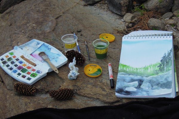 Kurzerhand fand als Ergebnis diverser Überlegungen ein Block Papier und ein Aquarell Malkasten Platz in unserem Reisegepäck, vielleicht ließe sich die Zeit ja für etwas Muse und Kunst nutzen? Eine gute Entscheidung wie sich zeigen sollte, denn tatsächlich fand dieses, für eine solche Reise doch eher unübliche, Zubehör seine Verwendung. Die Landschaft, die Ruhe und das ganze Ambiente entfalteten ihre Wirkung und so entstanden in der Abgelegenheit einiger Orte wundervolle Bilder, die unseren Reiseverlauf dokumentieren sollten. Handgemalte Zeichnungen statt hochauflösender Dronenvideos, eben ein kleines Stück mehr „Back To Nature“ :-).