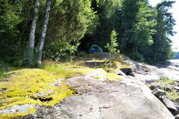 Über Gustavsfors und Krokfors kam ich an Tag 3 im Östra Silen an und bezog ein schönes Quartier in der Nähe einer der beiden Sonder-DANO-Shelter. Gegen Abend füllte sich die Insel und es wurde schnell klar, dass mir zwei Fehler unterlaufen waren. Erstens war ich in der Ferienzeit (DE) unterwegs und zweitens hatte ich nicht bedacht, dass in Rök ein Veranstalter sitzt, der bevorzugt Jugendgruppen mit 10-12 Booten auf die Reise schickt...