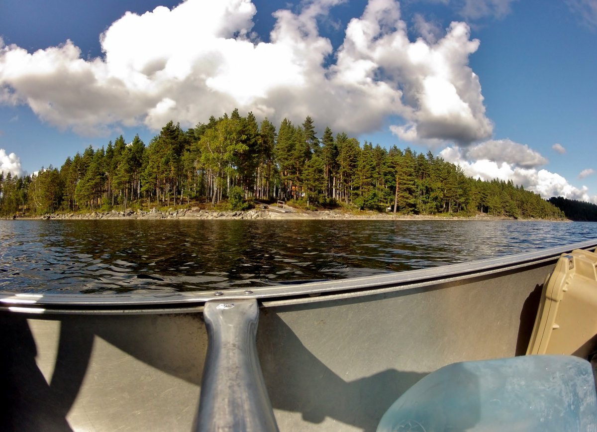 Der Wind war sehr stark und die Wellen südlich der Grenzinsel Trollöd auf dem Stora Le derart hoch, dass ich froh um die Rettungsweste war. Das beruhigte zumindest wenn das Wasser seitlich ins Boot spritzte und man gegen den Wind ankämpfte.