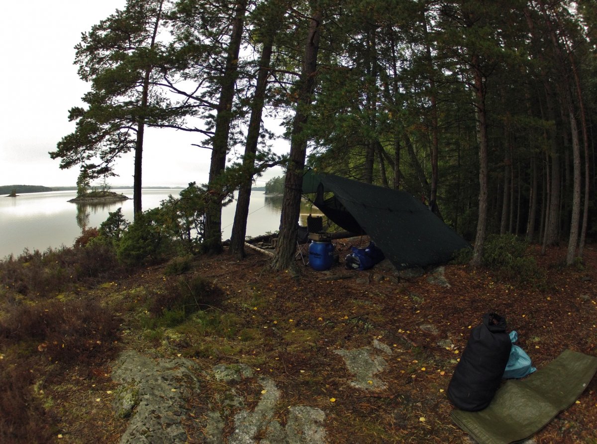 Das letzte mal Hängematte aufbauen, Tarp drüber, Feuerholz hatte ich von DANO 9 mitgebracht (was sich später als Weise erwies), Trangia an, Essen kochen, Firebox befeuern und mit dem Katadyn das Wasser filtern.