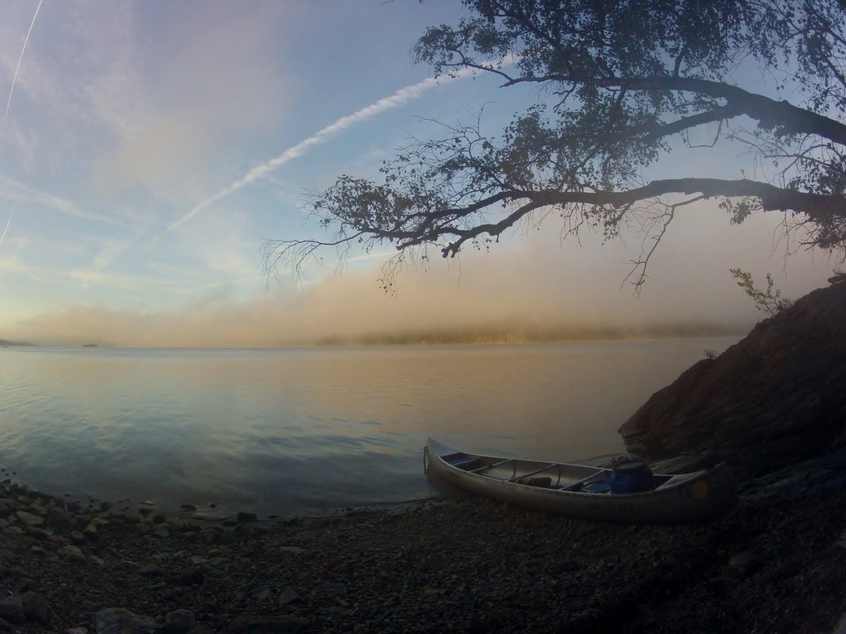 Meine Ausrüstung war durch die unmittelbare Nähe zum Ufer schnell und wieder ausgewogen im Kanu verstaut.