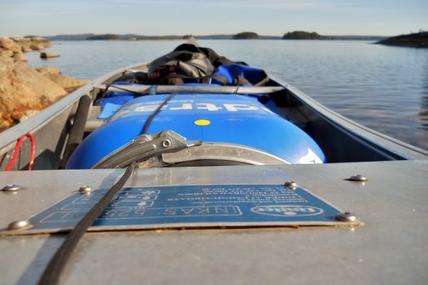 Der Wind war sehr stark und die Wellen südlich der Grenzinsel Trollöd auf dem Stora Le derart hoch, dass ich froh um die Rettungsweste war. Das beruhigte zumindest wenn das Wasser seitlich ins Boot spritzte und man gegen den Wind ankämpfte.