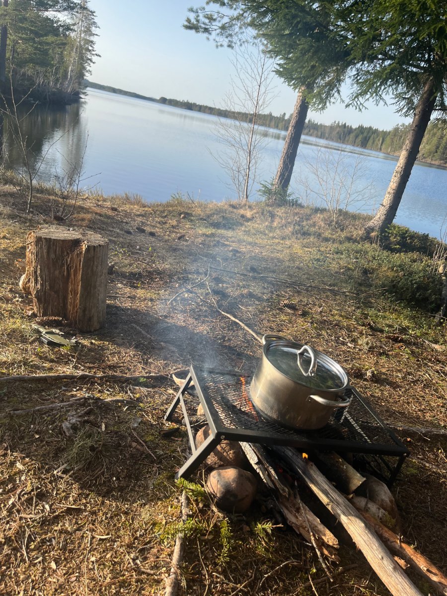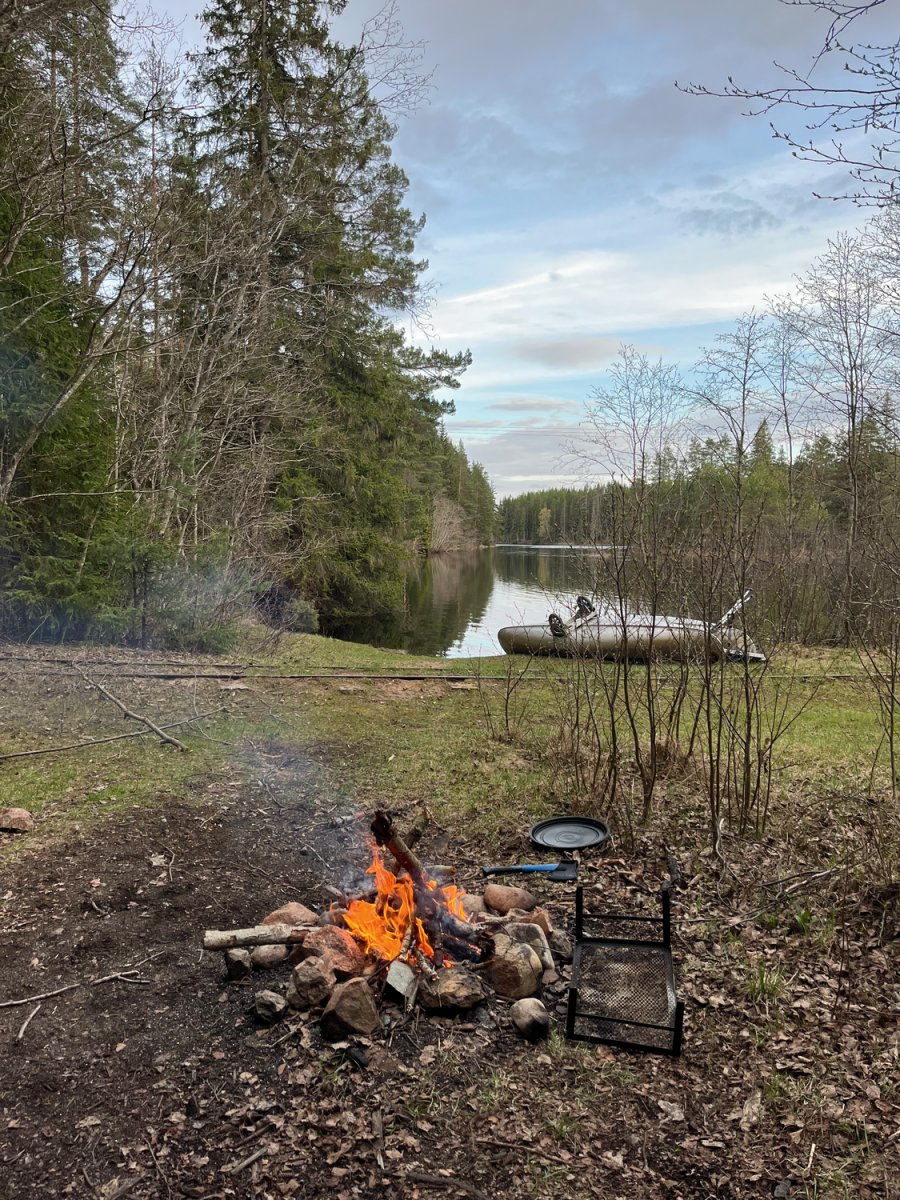 Die Landschaft entlang des Flusses ist atemberaubend. Dichte Wälder, einsame Inseln und malerische Ufer begleiten uns auf unserer Reise. Wir schlagen unser Lager an idyllischen Stellen auf und verbringen die Tage mit Angeln, Holz suchen, kochen und Geschichten am Lagerfeuer. Unser Hund ist begeistert von der Jagd nach Fischen und den unberührten Wäldern, die zum buddeln und spielen einladen. Ein Bad im kühlen Wasser, schnitzen, den Geräuschen der Natur lauschen und tagelang keiner Menschenseele zu begegnen sind ungewohnt, aber führen schnell dazu, dass man entschleunigt. Die Freude über jeden Fang und unvergleichliche Abenteuer verbindet uns als Gruppe und schafft unvergessliche Momente am Wasser.