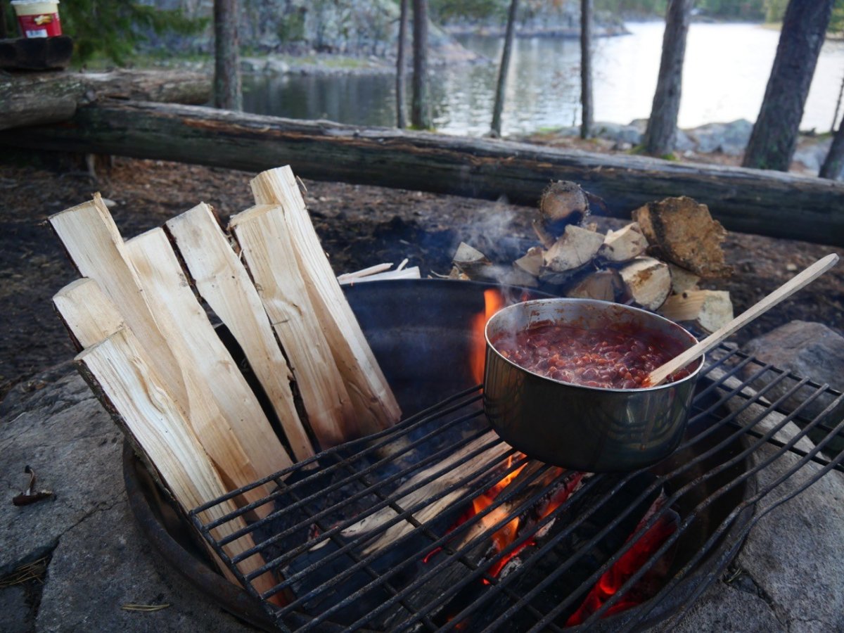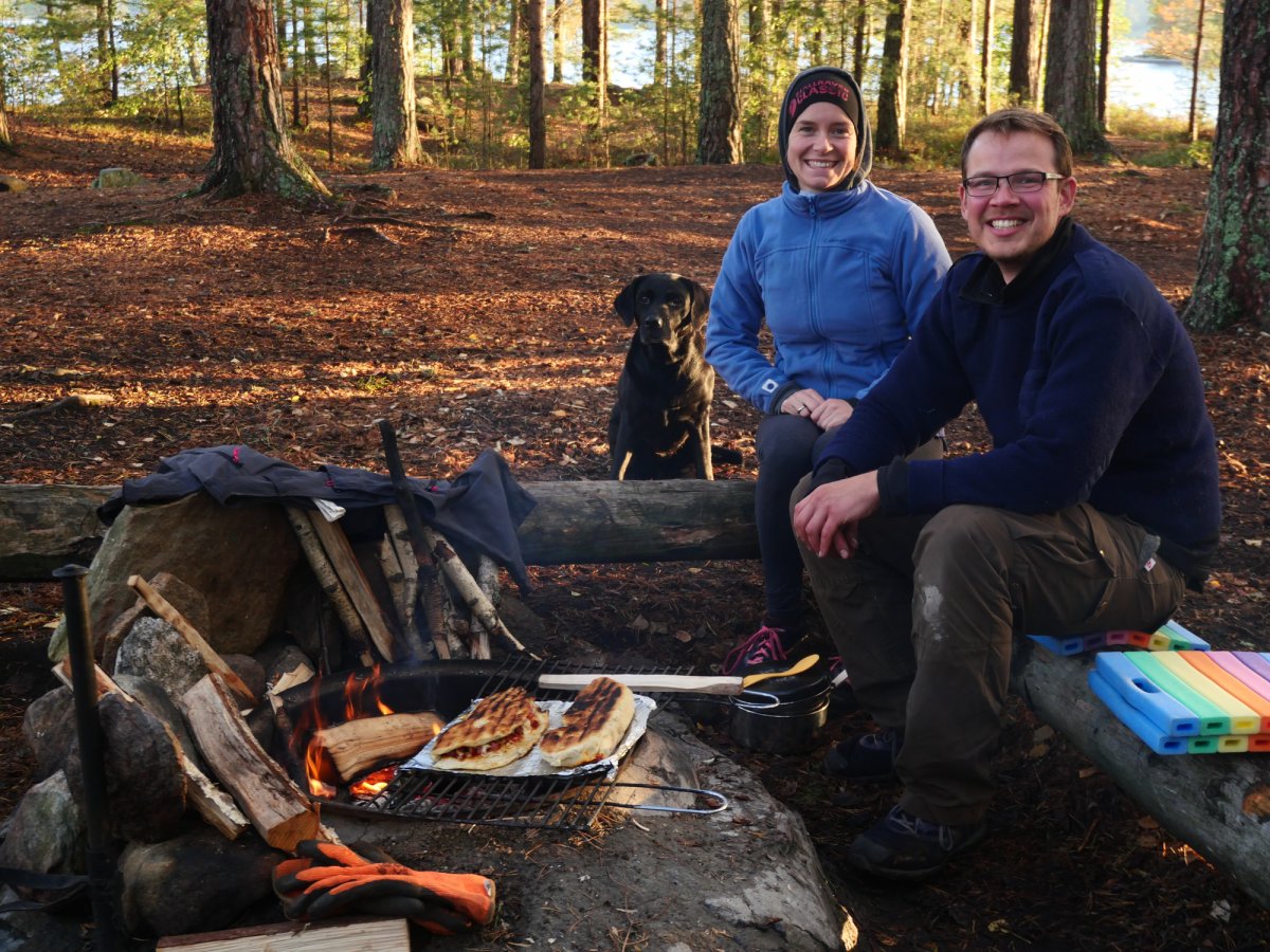 Scandtrack hat uns mit ausreichend Essen und Rezepten versorgt. Wir wären vermutlich nochmal 2-3 Tage länger mit der Verpflegung ausgekommen. Wir hatten verschiedene Dinge: Bratkartoffeln, selbst gemachte Pizza Calzone vom Feuer, Terence Hill Pfanne, Pilzpfanne, Pasta und Linseneintopf. Morgens hatten wir uns selbst etwas mitgenommen, da wir auf anderen Wanderungen schon gute Erfahrungen mit Oatmeal machten. Das gibt einen morgens gleich Kraft und Wärme.