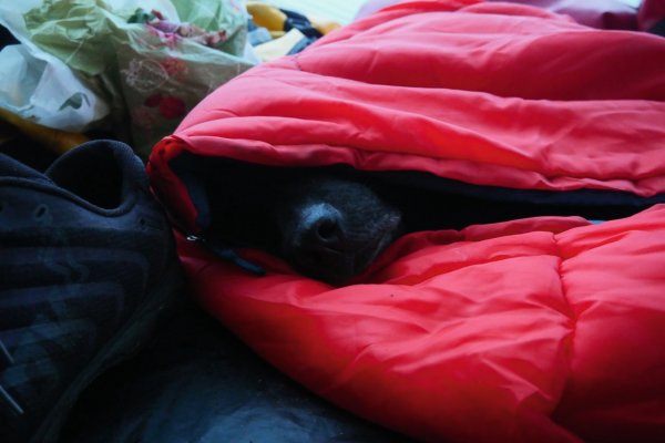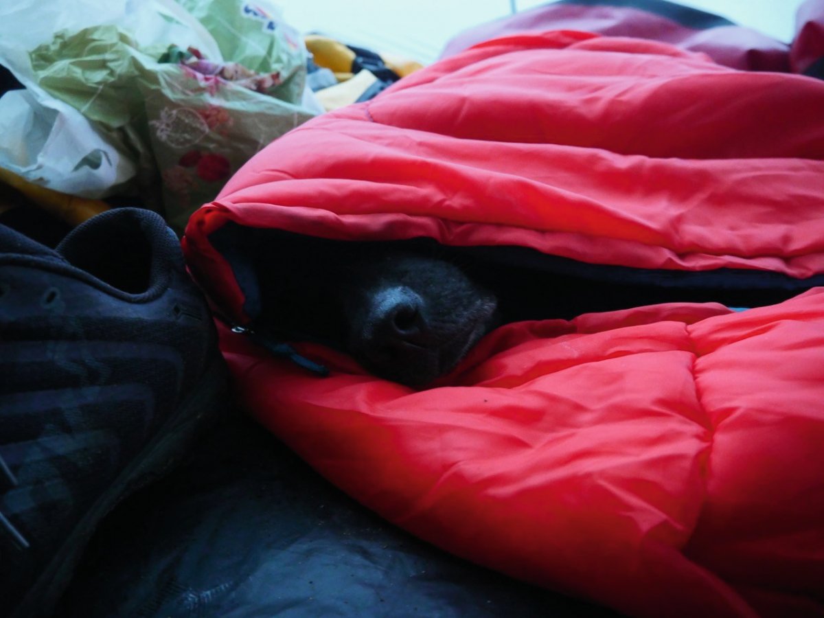 Ich habe für sie extra einen Schlafsack gekauft, so dass sie nachts nicht zu kalt wird. Das war eine gute Sache und sie hat den Schlafsack sehr gut angenommen. Ich glaube, sie hatte Spaß an dieser Tour.