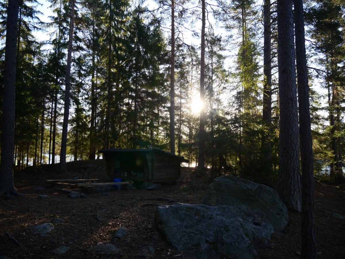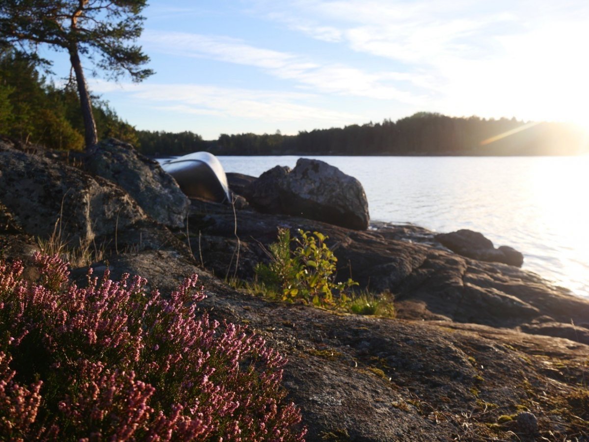 Wir hatten keine richtige Planung gemacht. Ich hatte Lust, Richtung Süden zur Torrskogs Källarbryggeri zu fahren. Also machten wir uns am ersten Tag Richtung Süden auf. Wir fuhren ungefähr bis Gyltenäs, wo wir die erste Nacht verbrachten. Konditionstechnisch wären wir vermutlich noch weitergekommen, aber der Südwind war recht stark und die Wellen im Vergleich zum Kanu recht hoch, so dass wir lieber kein Kenter-Risiko eingehen wollten und uns ein Schlafplätzchen suchten. Am nächsten Morgen hatte der Wind leider nicht nachgelassen. Dennoch wollten wir es Richtung Süden weiter probieren. Mit zwei anderen Kanukollegen hatten wir überlegt, es per Katamaran zu probieren. Wir verbrachten den Vormittag damit das vorzubereiten. Es funktionierte aber alles nicht und zum allen Überfluss fing es auch noch an zu regnen, so dass wir entschieden es Richtung Norden probieren zu wollen. Da hatten wir immerhin Rückenwind und den Regen nicht im Gesicht. Da durch die Umbauten bereits alles nass war, steuerten wir das nähst gelegenste DANO an – DANO 71 – in der Hoffnung, dass es dort eine Schutzhütte gibt, wo wir unsere Klamotten trocknen könnten. Es gab eine Schutzhütte. Den Nachmittag über verbrachten wir damit das Zeug wieder trocken zu bekommen, was auch geklappt hatte, so dass wir am nächsten Tag mit trocknen Klamotten und Zelt (Dank Tarp-Dach) weiter fahren konnten. Wir entschieden uns den Foxen hochzufahren und eine Runde zu fahren. Durch kleine Inselgruppen ging es am Ufer entlang Richtung Nordosten mit Rückenwind. Es war wunderschön hier: dunkelblaues Wasser, blauer Himmel (mit Wolken) und grüne Ufer. Und es war überall still – traumhaft! Unsere dritte Nacht verbrachten wir in DANO 40, welches wir in dieser Nacht ganz für uns allein hatten. Wir machten ein Feuer und genossen den Abend. Für den nächsten Tag war leider Regen angesagt, so dass wir bis mittags im Zelt lagen und uns dann entschieden, doch weiter zu paddeln. Wir hatten den See für uns allein, kein anderer war unterwegs und der Regen wollten nicht aufhören. Wir waren tapfer und haben DANO 33 auserkoren als nächste Schlafstätte. Auf dieser Strecke lag für mich die blödeste Umtragestelle in Fellingsed. Sie war lang, steil, es regnete und ich war frustriert. Aber Dank eines Cornys und Bastian haben wir auch diese Stelle gemeistert. Am Abend kam tatsächlich die Sonne heraus, so dass wir auch diesen Abend unter freiem Himmel genießen konnten. Der nächste Tag war super: SONNE SONNE SONNE! Wir sind früh raus um so viel wie möglich vom Tag zu haben. In Ed kam eine kurze Umtragestelle und wir kamen zum Ned Blomsjön. Riesige Felsen kamen hier aus dem See, so dass man sich in seinem kleinen Kanu ganz schön klein fühlte. Und wir konnten unendlich weit sehen. Diese Art der Schönheit kann man eigentlich gar nicht in Worte fassen.