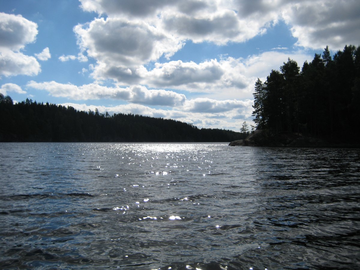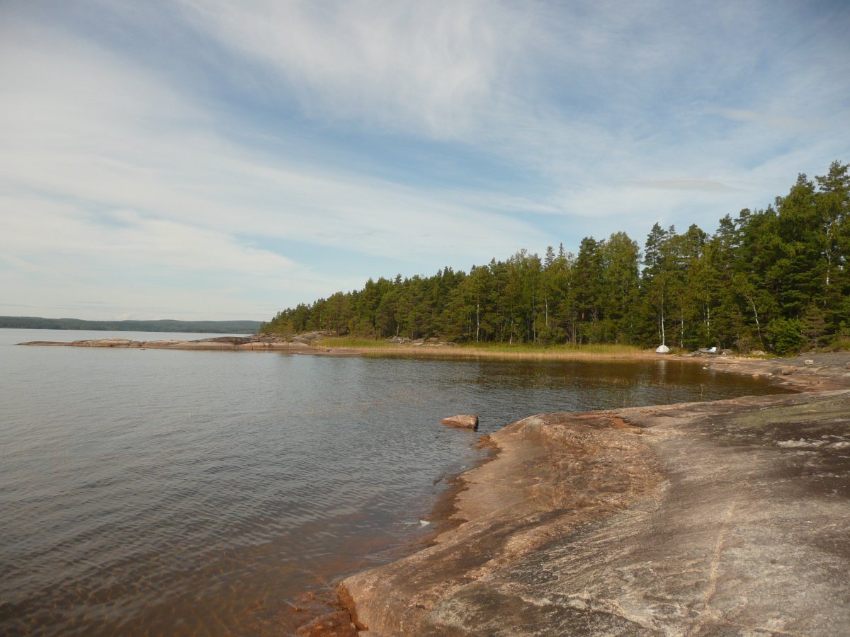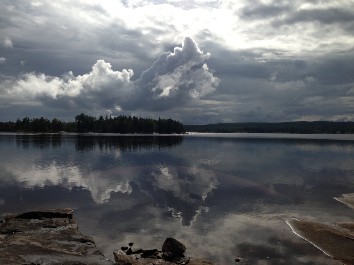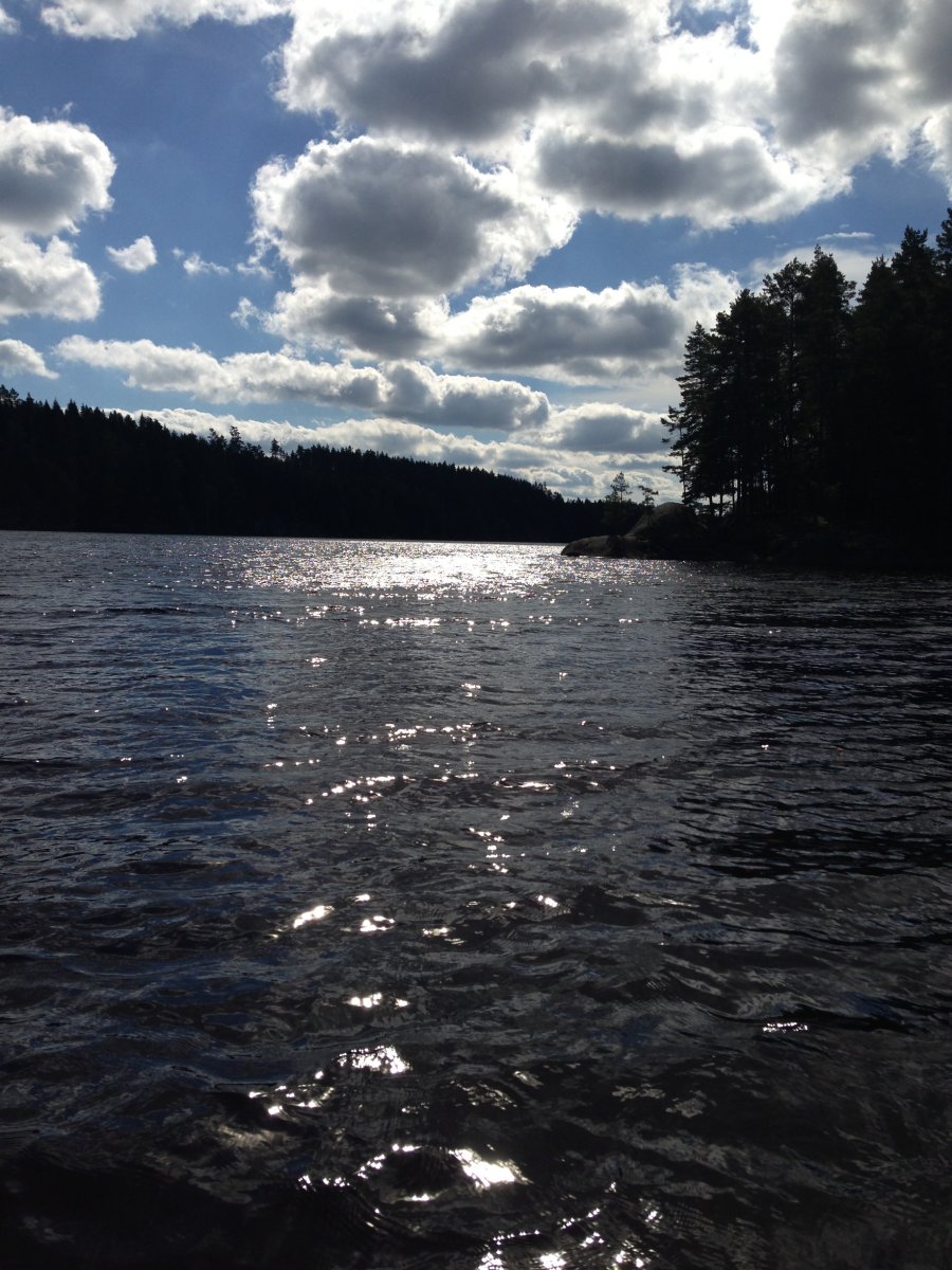 Am zweiten Tag haben wir erst einmal gemütlich gefrühstückt und uns eingehen mit der Land- bzw. Seenkarte auseinandergesetzt und überlegt wo wir hinwollen. Wir haben uns für einen Nebenarm entschieden. Das Zelt wurde abgebaut und der Rest auch im Boot verstaut und los gings auf den See und auf die Suche nach dem nächsten schönen Plätzchen für uns. Nach zwei Stunden gemütlich Paddeln haben wir diesen auch gefunden! Ein bisschen baden ein wenig kochen, Zelt aufbaun und genießen und der Zweite Tag war vorüber. Am dritten Tag wollten wir einmal ein eingezeichneten Lagerplatz ausprobieren und haben den perfekten für uns gefunden. An diesem Tag durften wir wie auch schon die vorherigen das wunderbare Wetter genießen, kleine Ferienhäuschen entdecken und anderen Kanuten winken. Am Abend ein Lagerfeuer und Kartoffeln in der Glut. Da wir lust dazu hatten und wir auch allein waren haben wir einfach unter freiem Himmel geschlafen den Fröschen beim Quaken zugehört und den Hirschen beim Bellen. Der Lagerplatz war super, es war schon etwas holz gehackt von den Vorgängern und das Plumsklo war auch OK. Nach einer sternklaren Ncht und einem nebeligen Morgen, erwartete uns ein sonniger und windiger Tag.