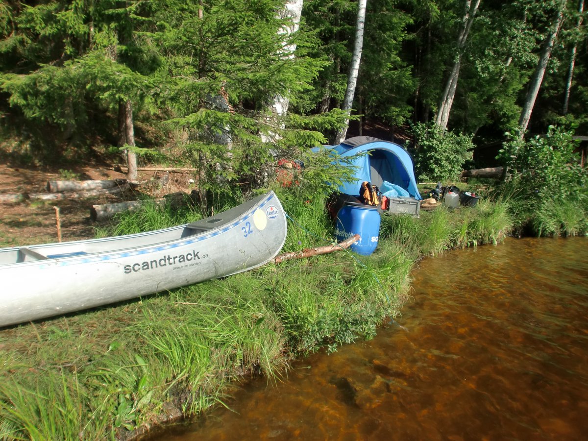 Wir hatten uns für eine Nachtfähre entschieden, damit wir die Überfahrt zum Schlafen nutzen konnten, was sich bei der recht langen Autofahrt als sehr sinnvoll herausgestellt hat. Am nächsten Morgen ging die Fahrt durch Schweden weiter. Zum Glück hatten wir unsere Fähre ein Tag früher gebucht, denn am gleichen Tag noch bis nach Lennartsfors zu fahren und dort mittags anzukommen wäre doch ziemlich stressig geworden. Die Wegbeschreibung aus den Unterlagen war sehr gut und so klappe die Fahrt ohne Umwege. Die Nacht verbrachten wir auf dem Campingplatz direkt neben dem Scantrack-Camp. Dieser ist sehr schön am See gelegen und die Sanitären Anlagen sind in Ordnung.