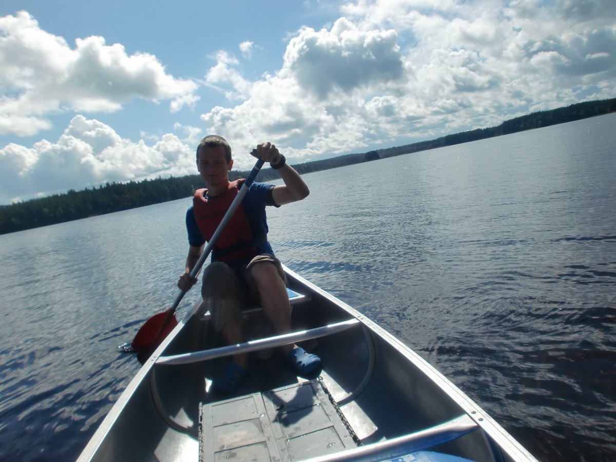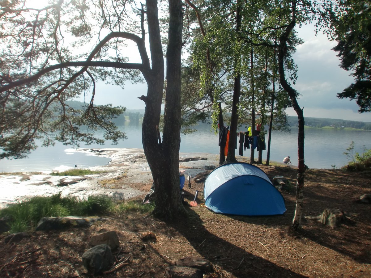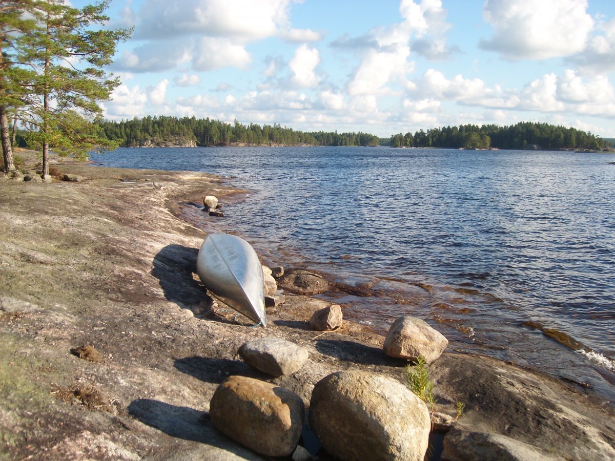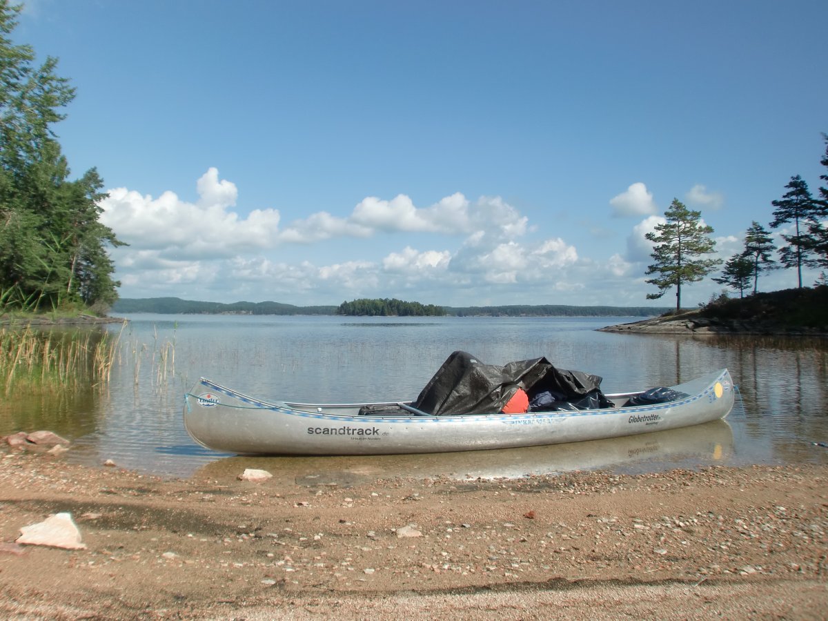 Um dem großen Ansturm zu entkommen haben wir einfach all unsere Sachen ins Kanu geladen und sind losgepaddelt. Dies stellte sich sehr bald als Fehler heraus, als es plötzlich heftig zu Gewittern anfing. Das Wetter schlug sehr schnell um und wir hatten überhaupt Schwierigkeiten bei den plötzlich doch sehr hohen Wellen schnell an Land zu kommen und dann auch noch einen passenden Platz zum Zelten zu finden. Wir wussten nicht wo sich die Plane befand und leider wurde alles in der Kiste triefnass, auch das Klopapier, was sich dadurch in kleine Flocken verwandelte. Also lieber Tüten mitbringen und alles vorher darin einpacken, vor allem die Plane ganz oben in die Kiste legen (oder noch besser im Kanu über das ganze Gepäck ausbreiten).