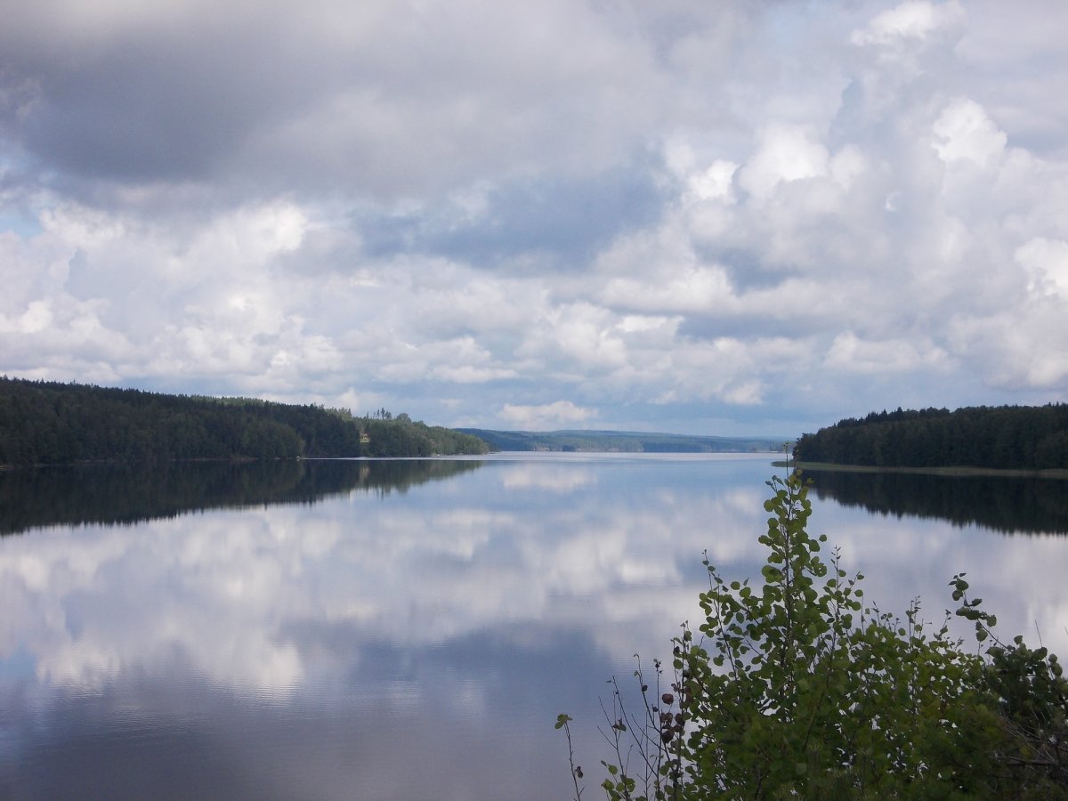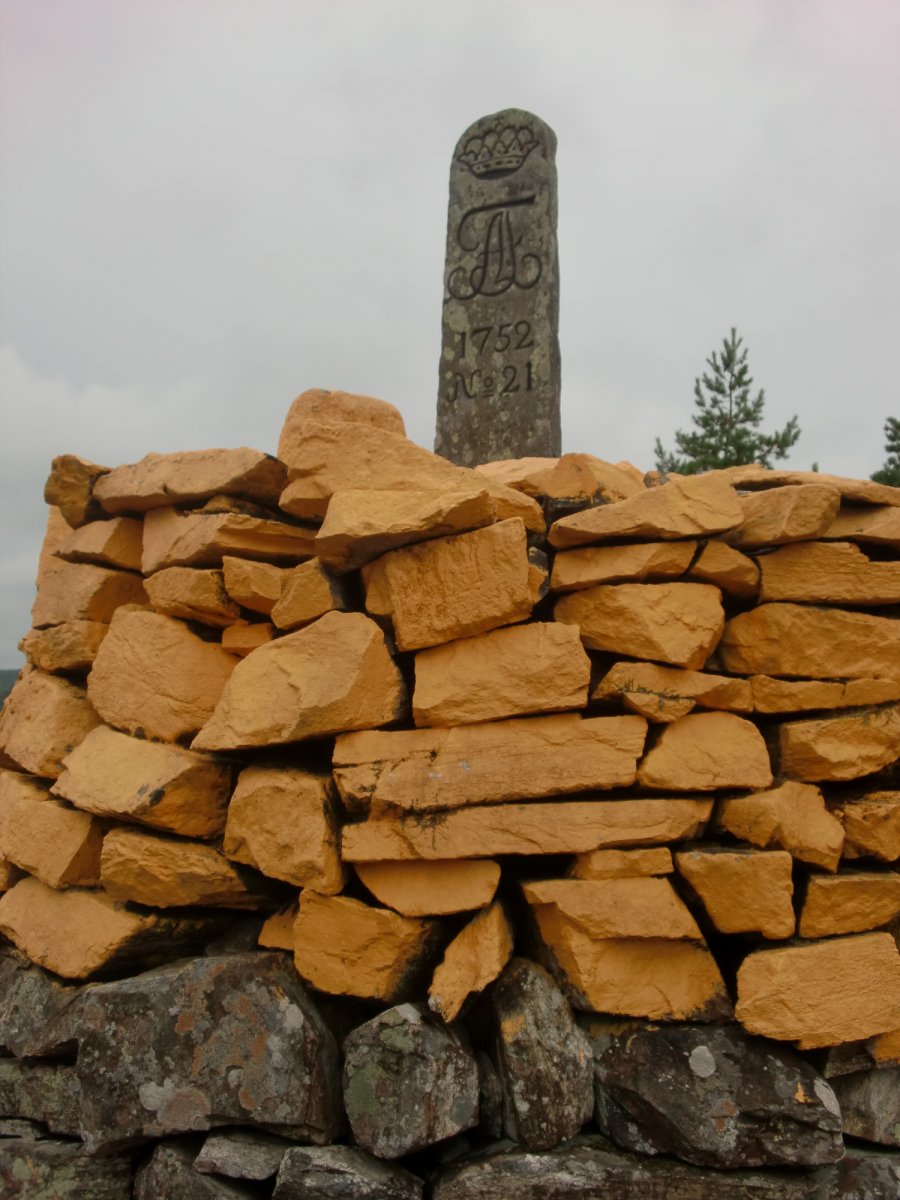 Auf dem Rückweg sind wir am steileren westlichen Ufer des Foxen entlang gefahren und haben noch einen Abstecher nach Norwegen gemacht. Den Grenzverlauf kann man an einer Schneise im Wald gut erkennen. Die Grenzsteine sind groß und gelb, also nicht zu übersehen.