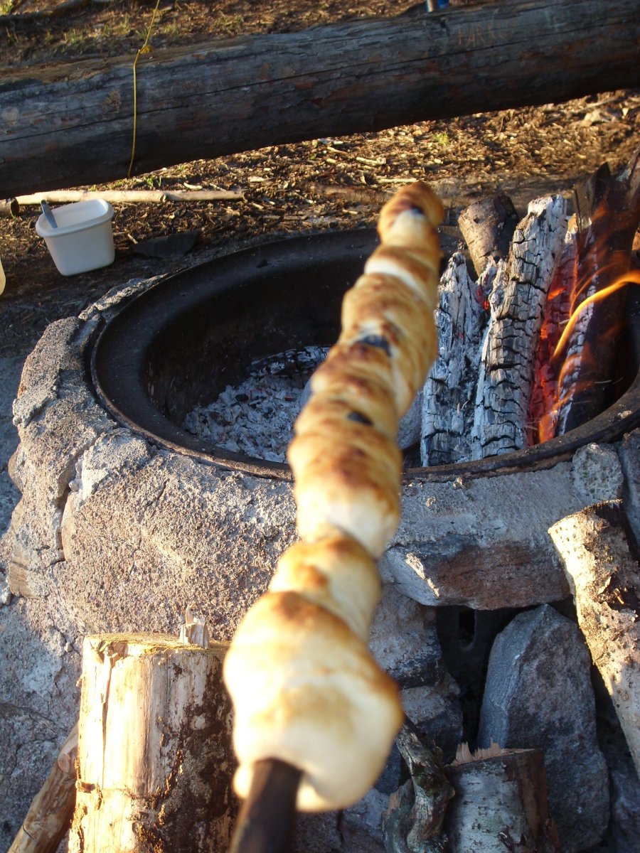 Nur das Mehl ging uns aus, nachdem wir versucht haben Blaubeerpfannkuchen zu machen (dies gelang uns keineswegs, da die Pfanne vollkommen verbeult war und das ganze Öl in die Beulen lief). Wir raten allen, gleich Stockbrot zu machen. Schmeckt auch süß mit Blaubeeren super und man kann sogar eine Karamellkruste zaubern.