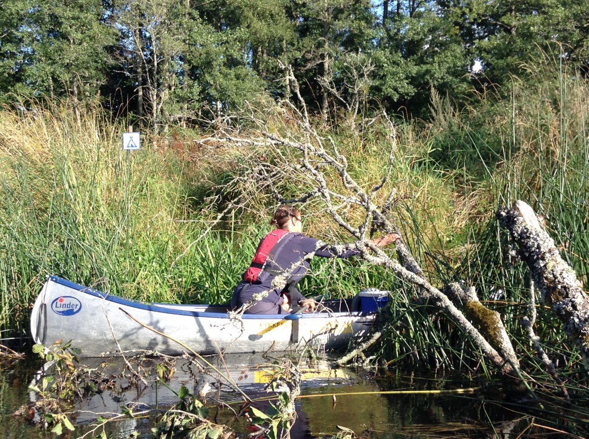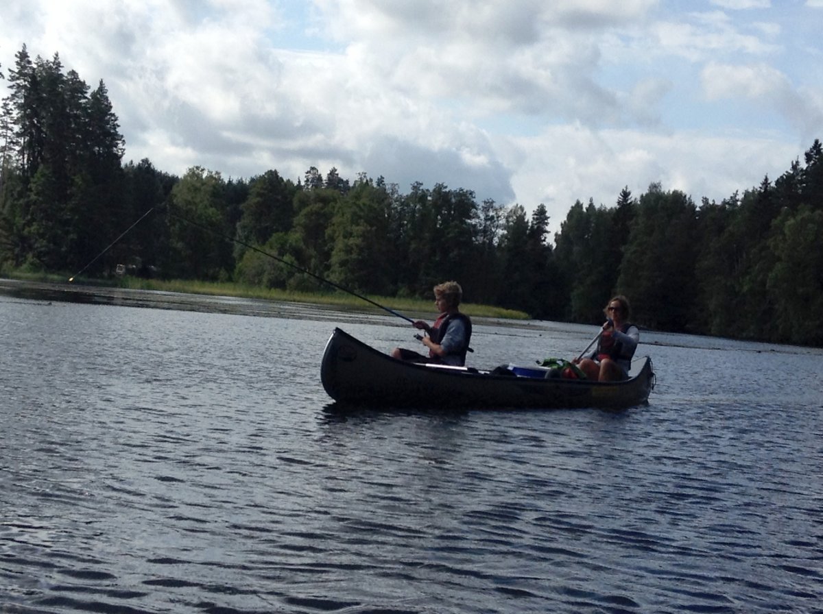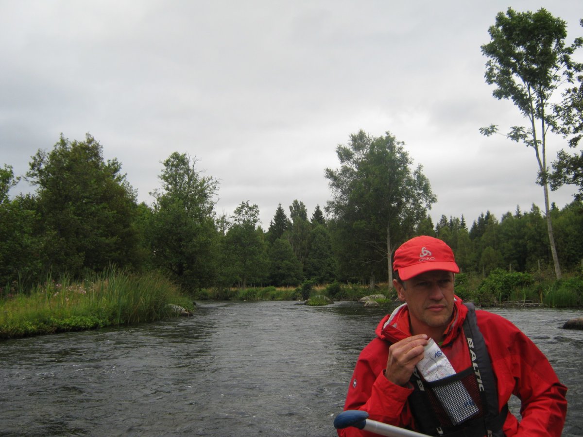 Auf der gesamten Kanustrecke hatten wir zahllose Erlebnisse, das einprägsamste davon war wohl die Begegnung mit einem Elch, der offensichtlich am Tidan getrunken hatte und überrascht war, uns auf dem Fluss zu begegnen. Dann waren noch die zwei Rehe, die durch den Tidan schwammen. Schwimmende Rehe? Noch nie gesehen. Zahllose Libellen jeglicher Größe waren neben den vielen Wildgänsen die einzigen fliegenden Begleiter. Stechmücken? Fehlanzeige! Wir packten unser Anti-Brumm quasi unbenutzt wieder ein.