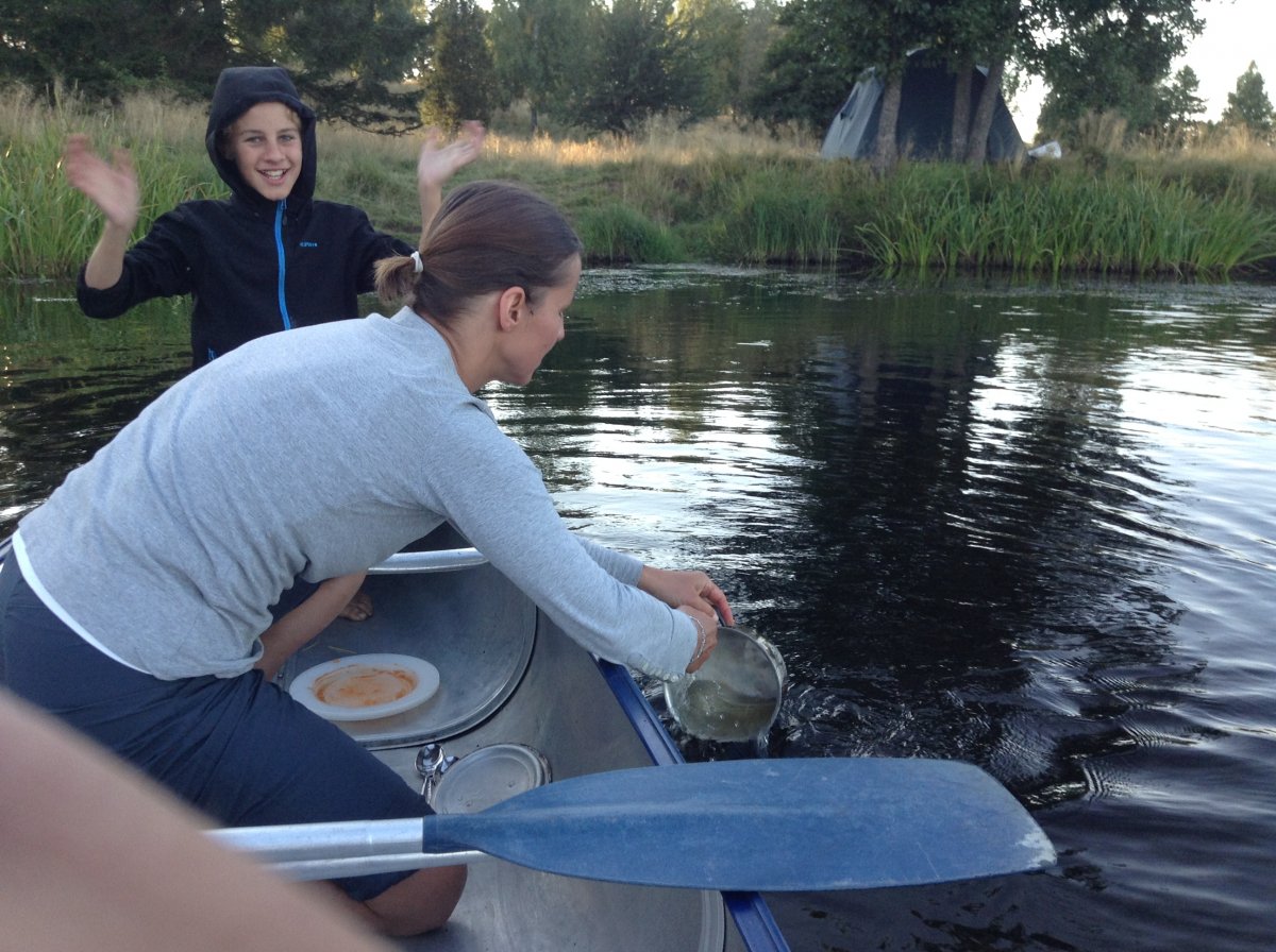 Essen zubereiten mit Wasser aus dem Tidan, kochen, zusammen essen und später Geschirr spülen. Aufräumen. Im Zelt so nahe, wie das ganze Jahr nicht, zusammen einschlafen und aufwachen. Zelt abbauen, packen und Kanus beladen. Weiter geht’s mit paddeln durch breite Flussabschnitte, mit Bäumen versperrten Engstellen und mancherlei Stromschnellen. Nicht zu vergessen die Untiefen durch die mächtigen Felsbrocken im Fluss, an denen sich der Kanadier bei Unachtsamkeit nur zu gerne festklemmt. Jeder Tag ein Abenteuer mit unklarem Verlauf, Ausgang und Ausklang.