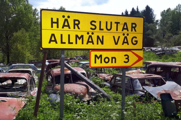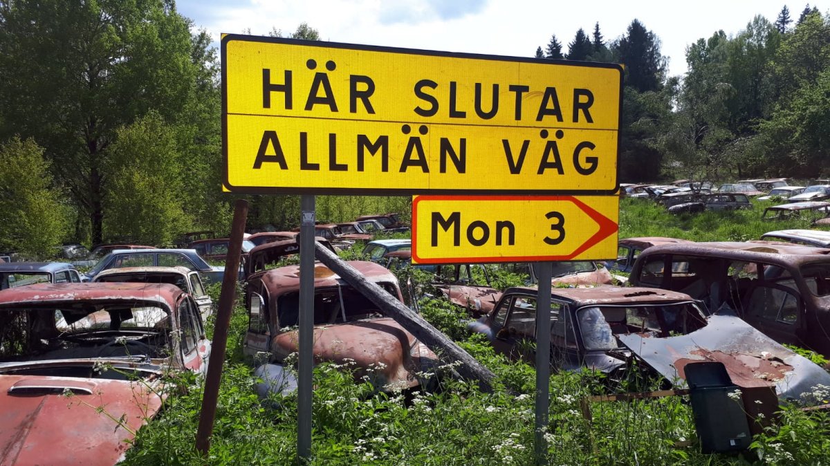 Nach etwa 30 Minuten Fußmarsch entdeckten wir die ersten Hinweise, dass der Weltuntergang begonnen hat. Das erste uralte Fahrzeug im Straßengraben.