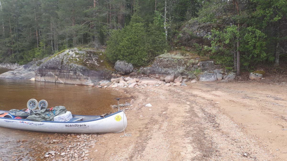 Aber wir hatten Glück und trafen ein junges Paar, die gerade ihre Sachen packten um wieder aufzubrechen. Endlich ein Dano. Wir halfen den zweien noch beim Transport ihrer Ausrüstung zu ihrem Kanu.