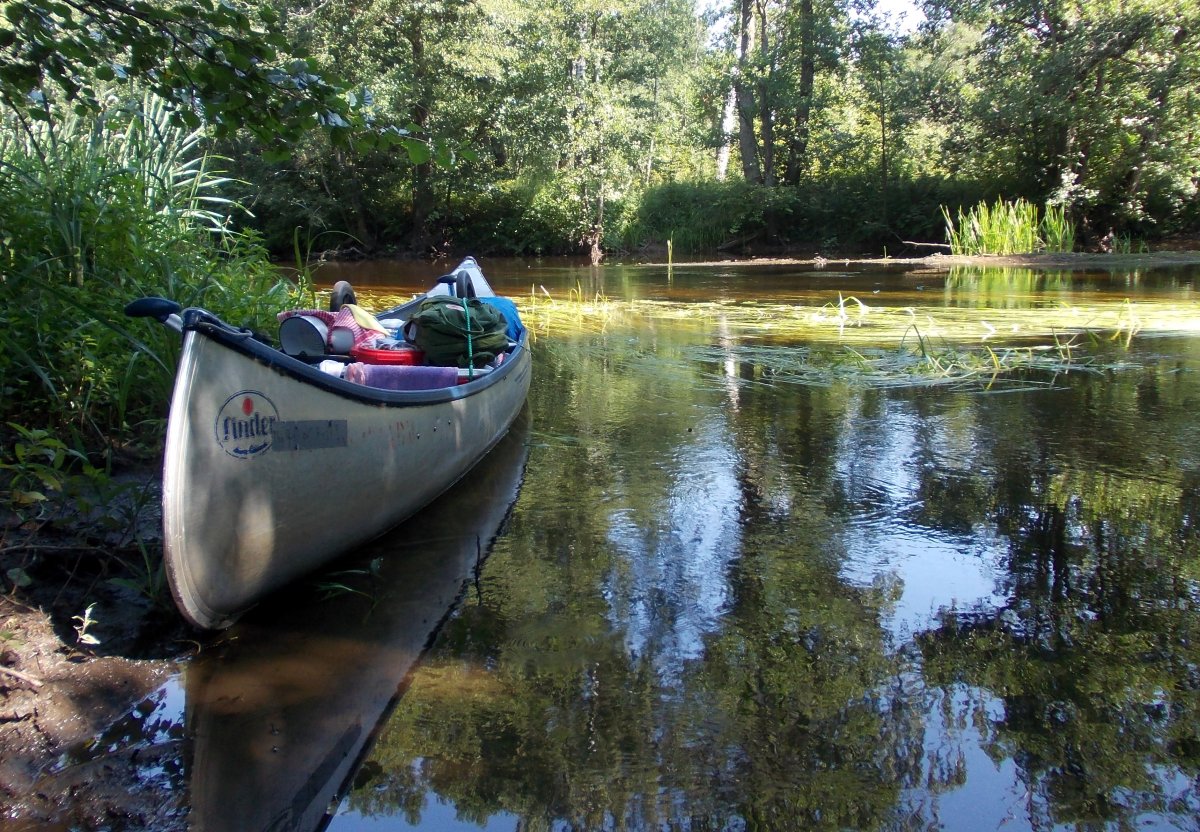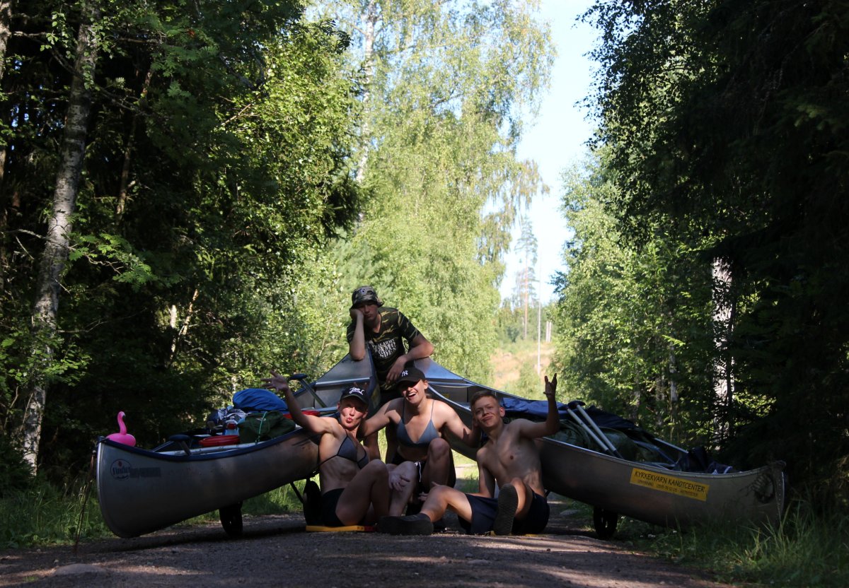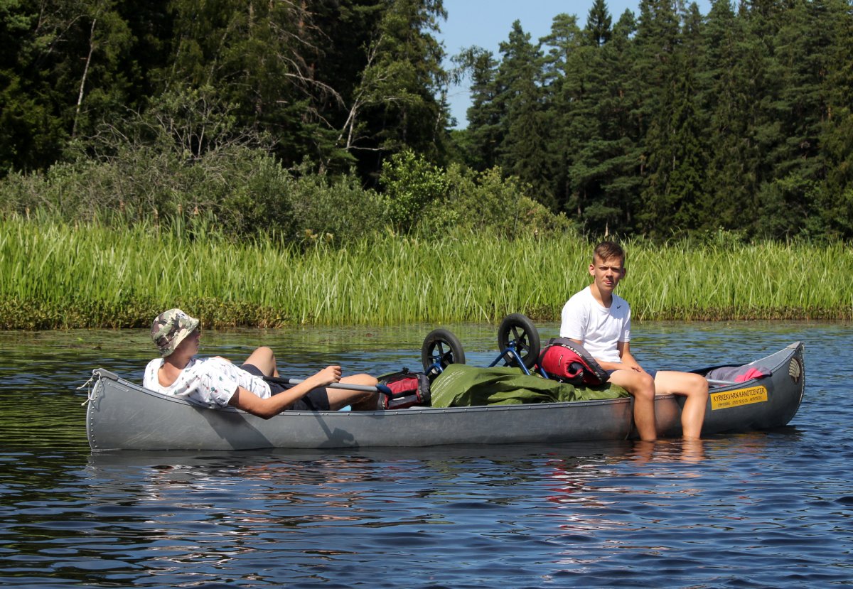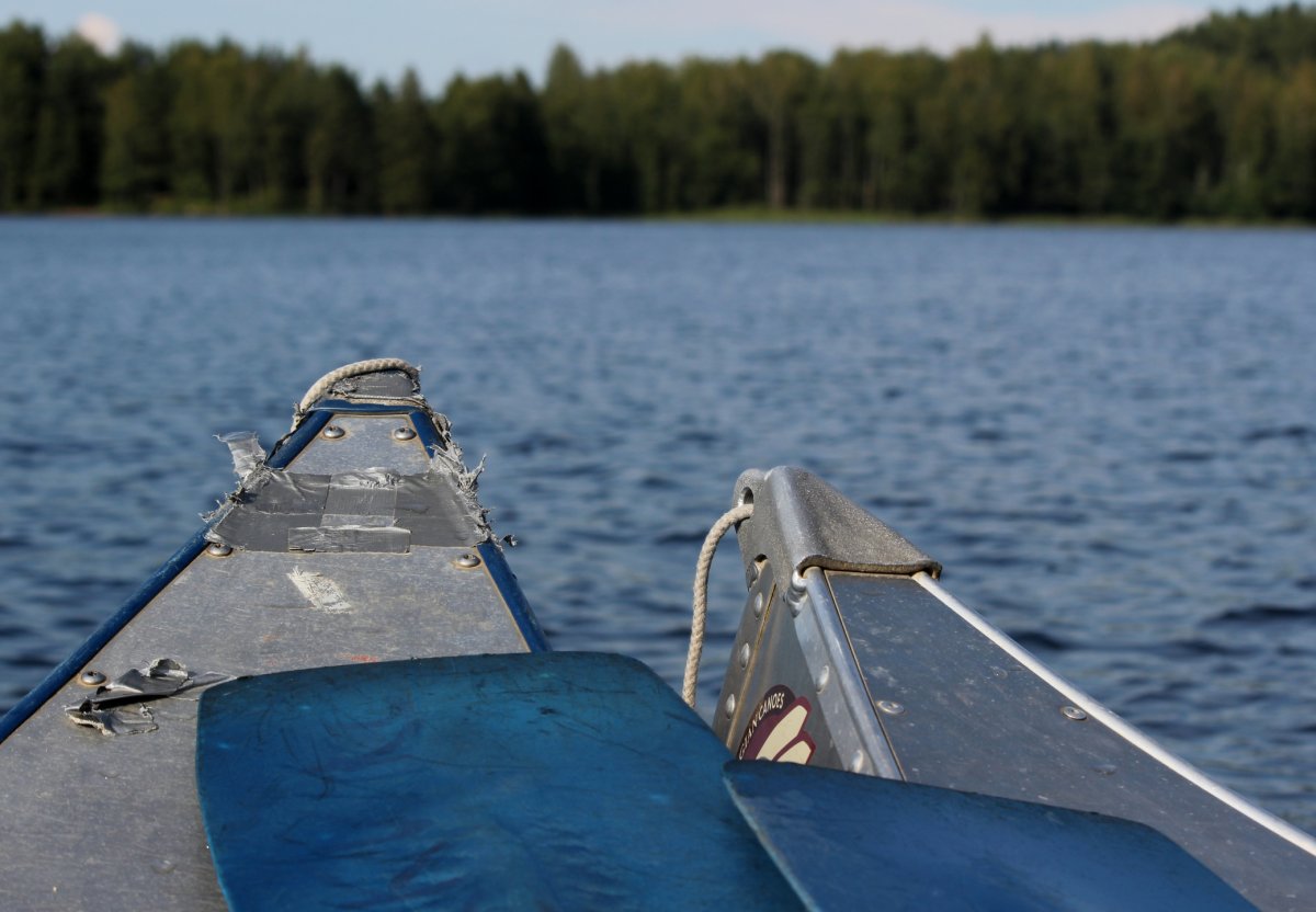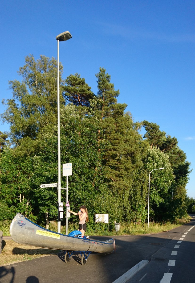 Am Abend des 12. Juli sind wir mit dem Auto von Rostock mit der Nachtfähre nach Schweden/ Trelleborg über gesetzt. Von dort haben wir uns sofort auf den Weg zum Ziel begeben, unser Abenteuer begann im Kyrkekvarns Kanotcenter in Västergötland. An der Rezeption wurden wir nicht nur einmal gefragt, ob wir die Route entlang des Tidan einschlagen wollen. Immerhin gibt es dort etliche Umtragestellen, wobei wir Strecken über Land bis zu 1.700 m bewältigen sollten. Na klar! Wir sind jung, dynamisch und hoch motiviert. Schnell haben wir unsere zwei Kanus, welche vom Veranstalter zur Verfügung gestellt worden, bestückt: Zelte, Isomatten, Schlafsäcke und jede Menge Proviant. Nachmittags tauchten wir erstmalig die Paddel in's klare Wasser und zogen beschwingt los. Nach etwa 6 km überraschte uns ein Regenschauer und wir beschlossen bei Hallaströmmen unser erstes Nachtlager aufzuschlagen. Weil wir unsere Pack-Künste nicht richtig überlegt hatten, waren einige wichtige Utensilien nass geworden. Dennoch haben wir nach dem Verzehr eines zerkochten Nudelklumpens gut geschlafen und sind am nächsten Morgen nach einem reichlichen Frühstück in den zweiten Tag gestartet. Vor Ort gab es die erste Umtragestelle, aber die Kanus waren ja leer und wir glaubten wirklich, dass sich das weiterhin so einfach gestaltet. Gemütlich und ohne Zeitdruck paddelten wir bis Bengtsvad zur nächsten Umtragestelle, die seltsamerweise eine Treppe war. Nachdem wir diese bewältigt hatten, dauerte es gar nicht lange bis Brokvarn. Dort mussten wir die Boote auf den Kanuwagen sogar schon 800 m über Land ziehen, mittlerweile haben wir uns gut eingespielt und hatten alles im Griff. Unser nächstes Ziel war der See Gimmesjön, den wir überquerten und am nördlichen Ufer unseren Platz für die Nacht vorbereiteten. Nach einem sonnigen Tag und etwa 9 zurückgelegten Kilometern gab es das erste Mal Dosenfutter. Nachts hörten wir uns unbekannte Geräusche, wahrscheinlich hat uns ein Elch ausgelacht.