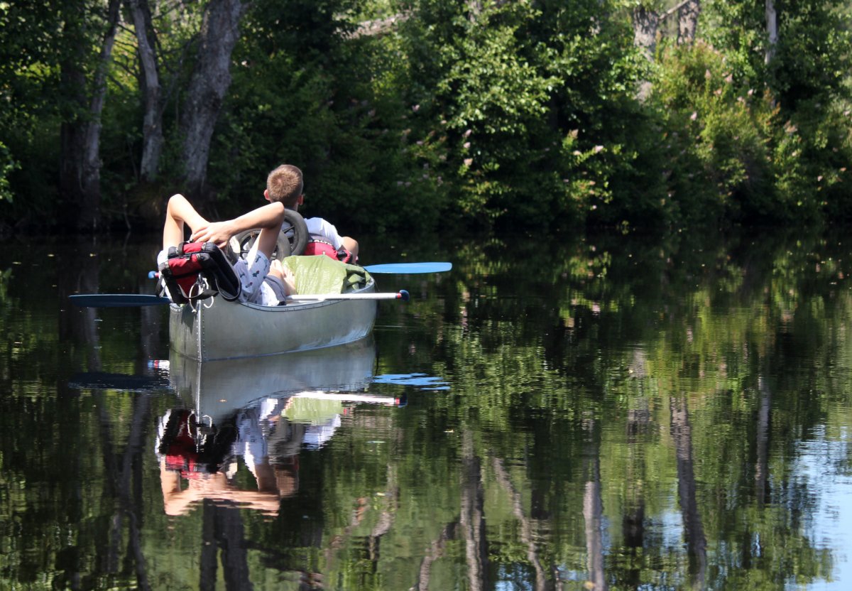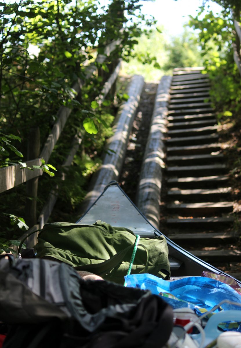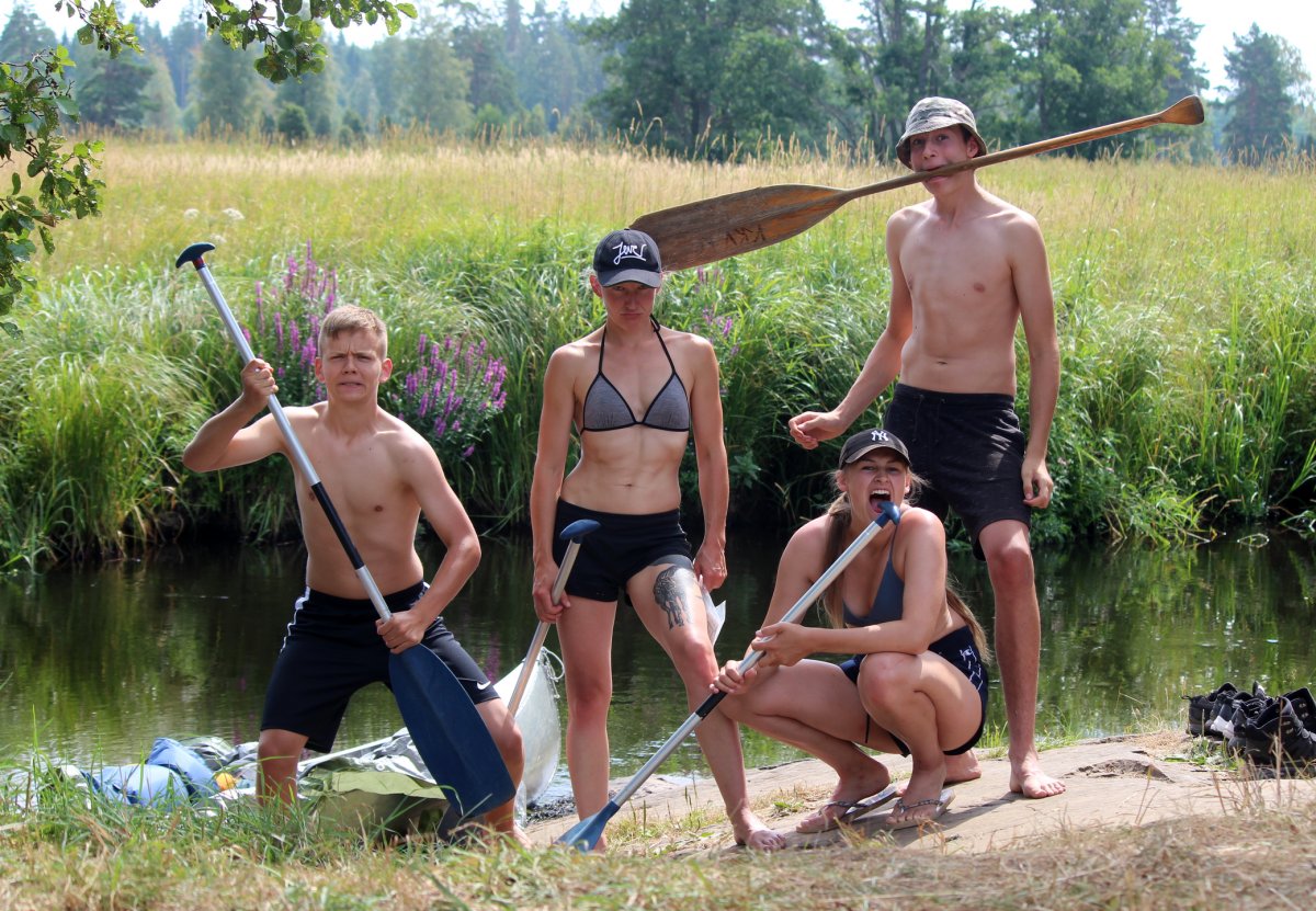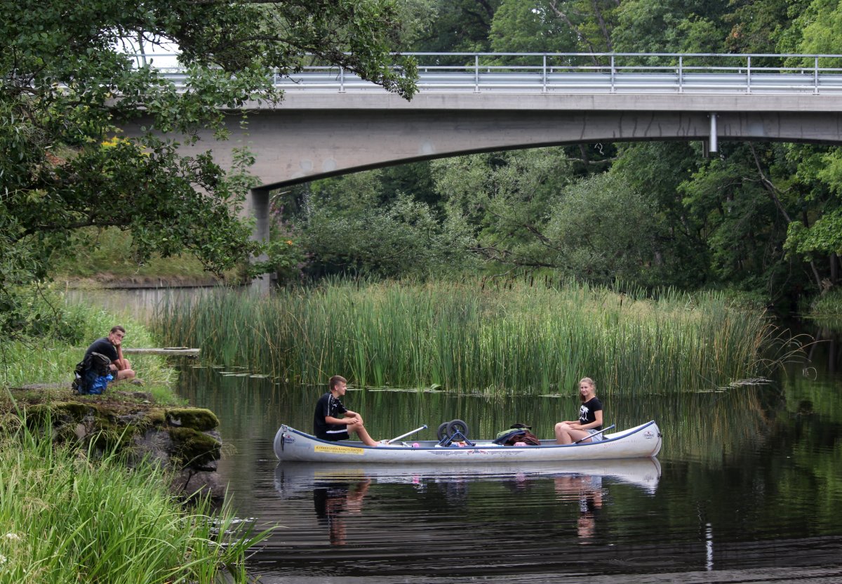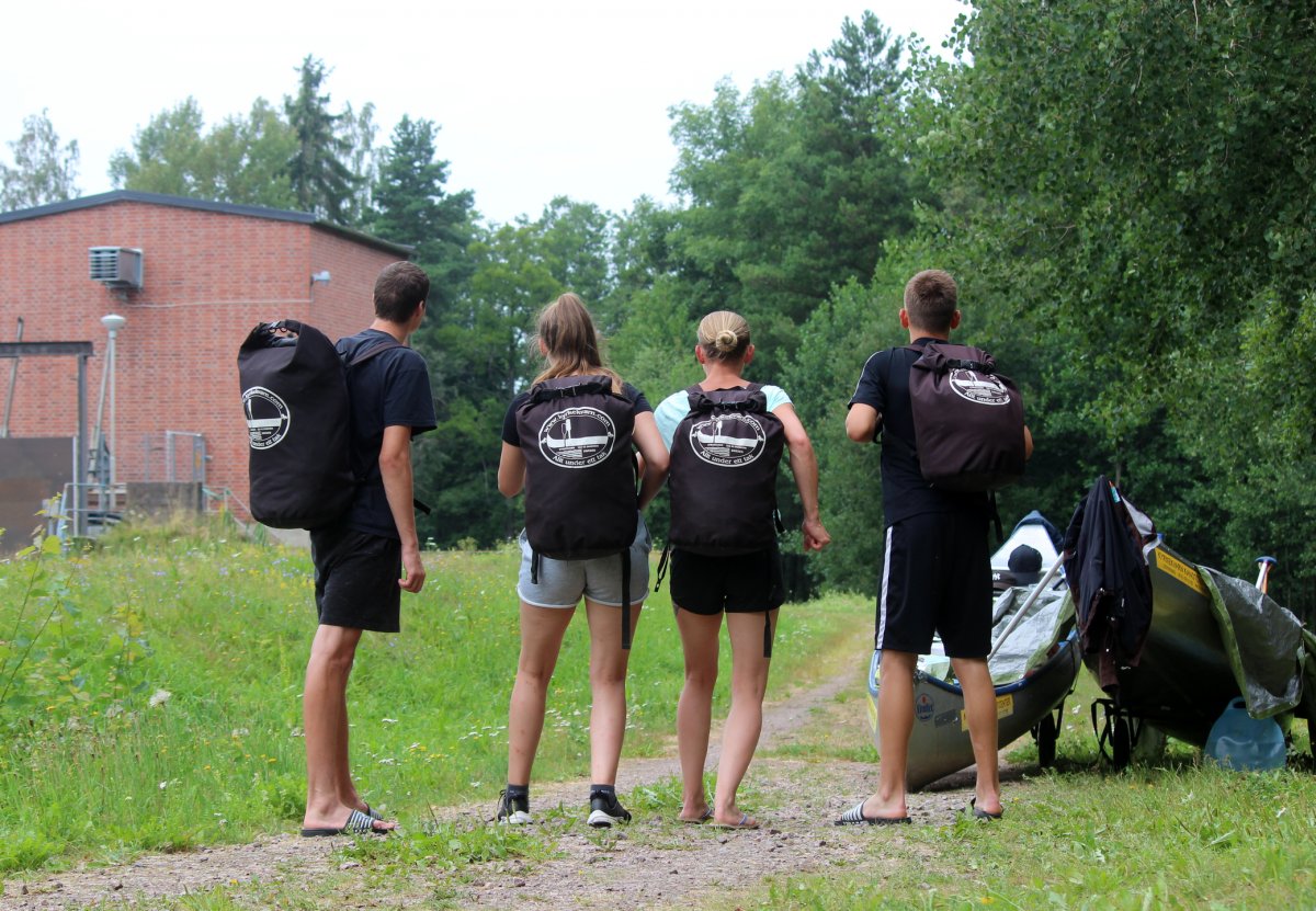 Am Abend des 12. Juli sind wir mit dem Auto von Rostock mit der Nachtfähre nach Schweden/ Trelleborg über gesetzt. Von dort haben wir uns sofort auf den Weg zum Ziel begeben, unser Abenteuer begann im Kyrkekvarns Kanotcenter in Västergötland. An der Rezeption wurden wir nicht nur einmal gefragt, ob wir die Route entlang des Tidan einschlagen wollen. Immerhin gibt es dort etliche Umtragestellen, wobei wir Strecken über Land bis zu 1.700 m bewältigen sollten. Na klar! Wir sind jung, dynamisch und hoch motiviert. Schnell haben wir unsere zwei Kanus, welche vom Veranstalter zur Verfügung gestellt worden, bestückt: Zelte, Isomatten, Schlafsäcke und jede Menge Proviant. Nachmittags tauchten wir erstmalig die Paddel in's klare Wasser und zogen beschwingt los. Nach etwa 6 km überraschte uns ein Regenschauer und wir beschlossen bei Hallaströmmen unser erstes Nachtlager aufzuschlagen. Weil wir unsere Pack-Künste nicht richtig überlegt hatten, waren einige wichtige Utensilien nass geworden. Dennoch haben wir nach dem Verzehr eines zerkochten Nudelklumpens gut geschlafen und sind am nächsten Morgen nach einem reichlichen Frühstück in den zweiten Tag gestartet. Vor Ort gab es die erste Umtragestelle, aber die Kanus waren ja leer und wir glaubten wirklich, dass sich das weiterhin so einfach gestaltet. Gemütlich und ohne Zeitdruck paddelten wir bis Bengtsvad zur nächsten Umtragestelle, die seltsamerweise eine Treppe war. Nachdem wir diese bewältigt hatten, dauerte es gar nicht lange bis Brokvarn. Dort mussten wir die Boote auf den Kanuwagen sogar schon 800 m über Land ziehen, mittlerweile haben wir uns gut eingespielt und hatten alles im Griff. Unser nächstes Ziel war der See Gimmesjön, den wir überquerten und am nördlichen Ufer unseren Platz für die Nacht vorbereiteten. Nach einem sonnigen Tag und etwa 9 zurückgelegten Kilometern gab es das erste Mal Dosenfutter. Nachts hörten wir uns unbekannte Geräusche, wahrscheinlich hat uns ein Elch ausgelacht.